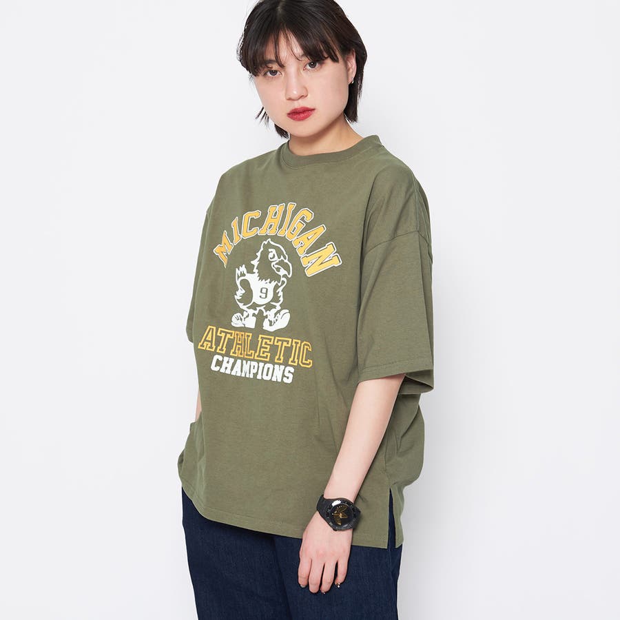 バードプリントカレッジTシャツ