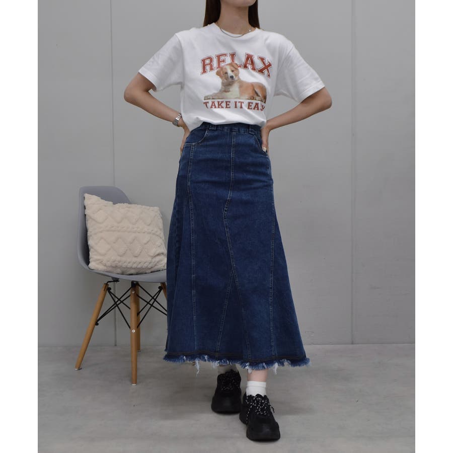 デニムやカーゴパンツなどのボトムも勿論のこと、スカートでガーリーに着こなすのも◎。