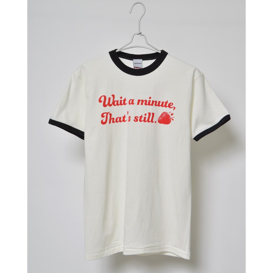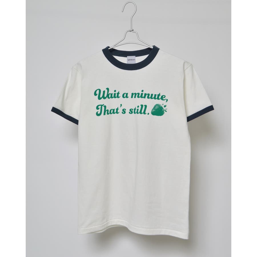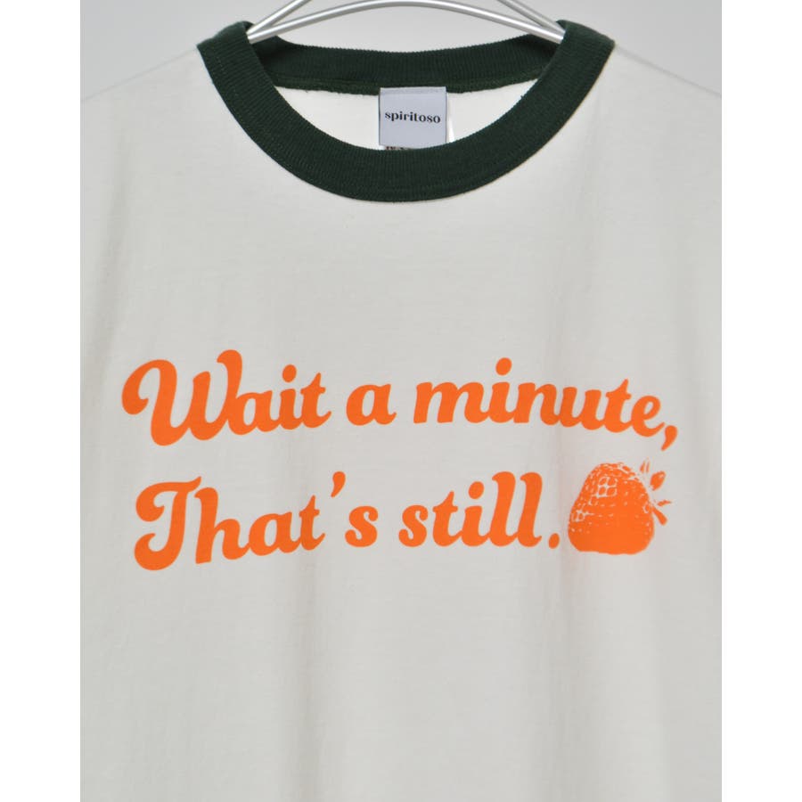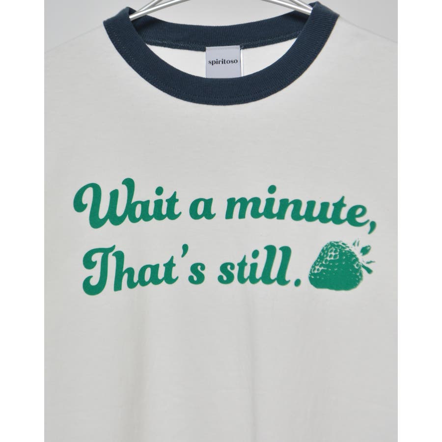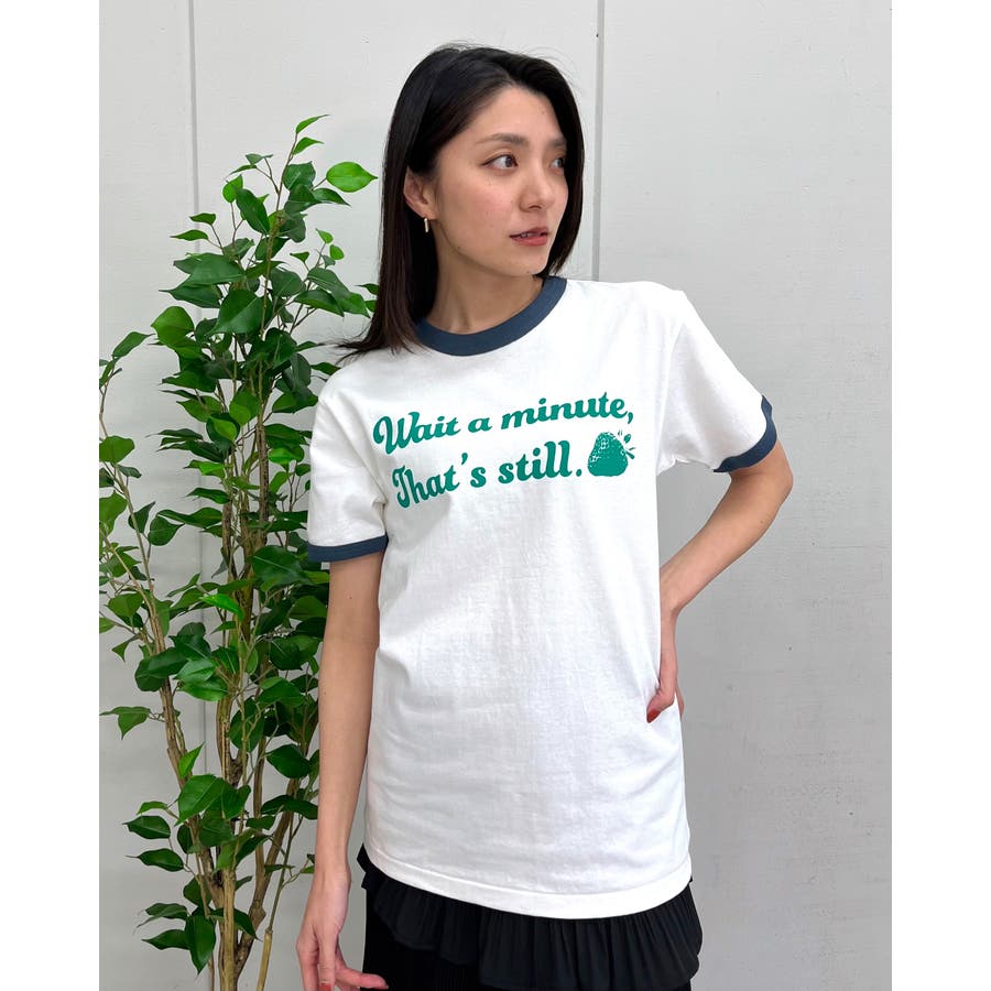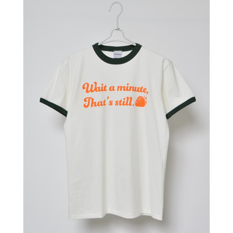 【グリーン】WAIT A MINUTEイチゴプリント リンガーTシャツ