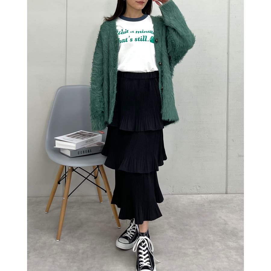 デニムやカーゴパンツなどのボトムも勿論のこと、スカートでガーリーに着こなすのも◎。