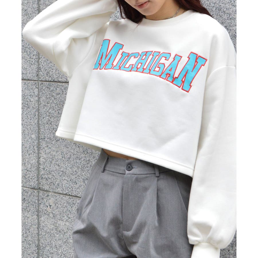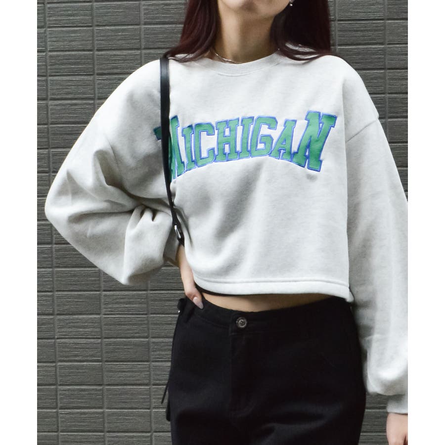 カレッジロゴショート丈裏起毛トレーナー