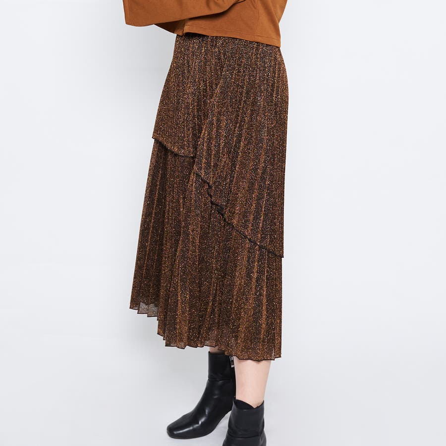 レディース ボトム スカート 韓国ファッション フレアスカート ラメ プリーツスカート ロングスカート きらきら 大人 上品 フェミニン きれいめ