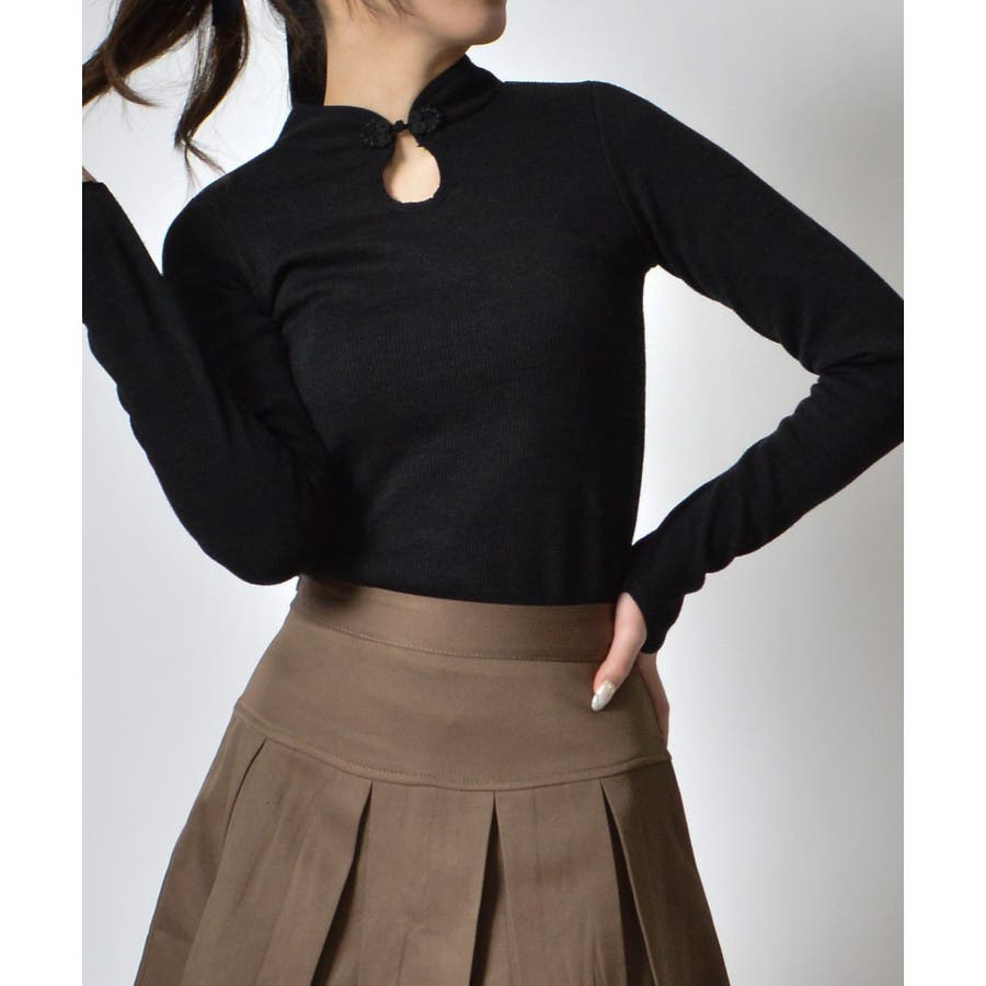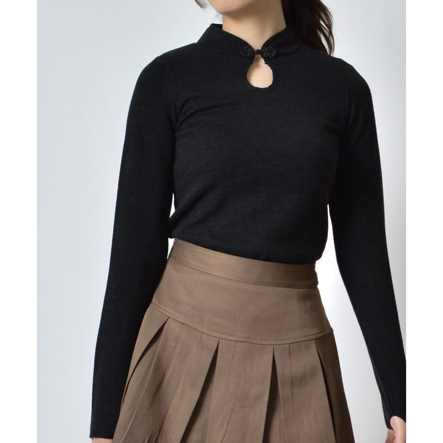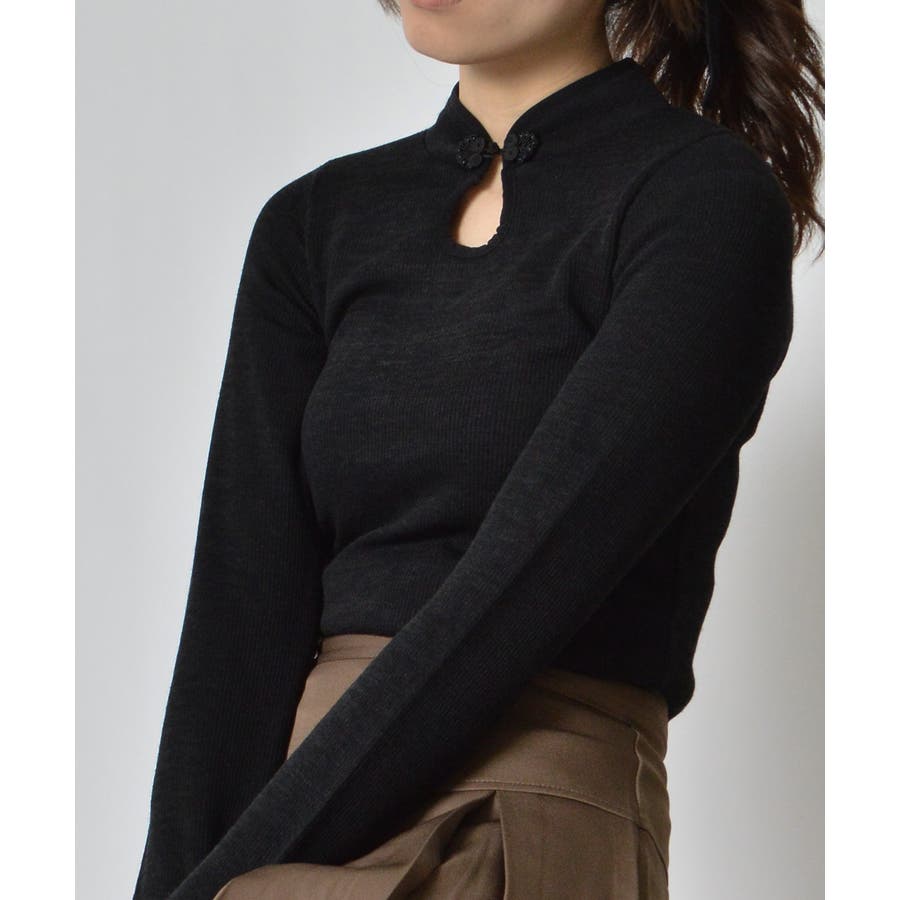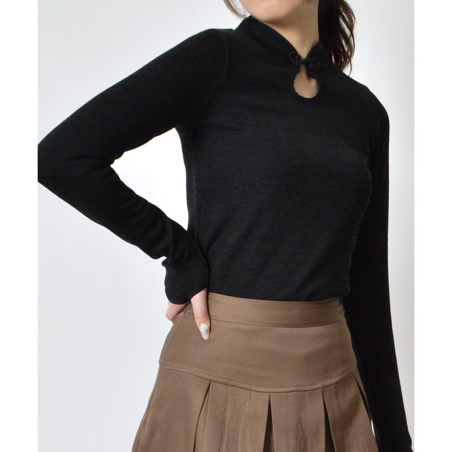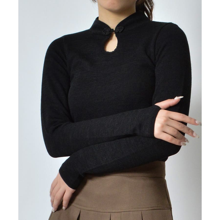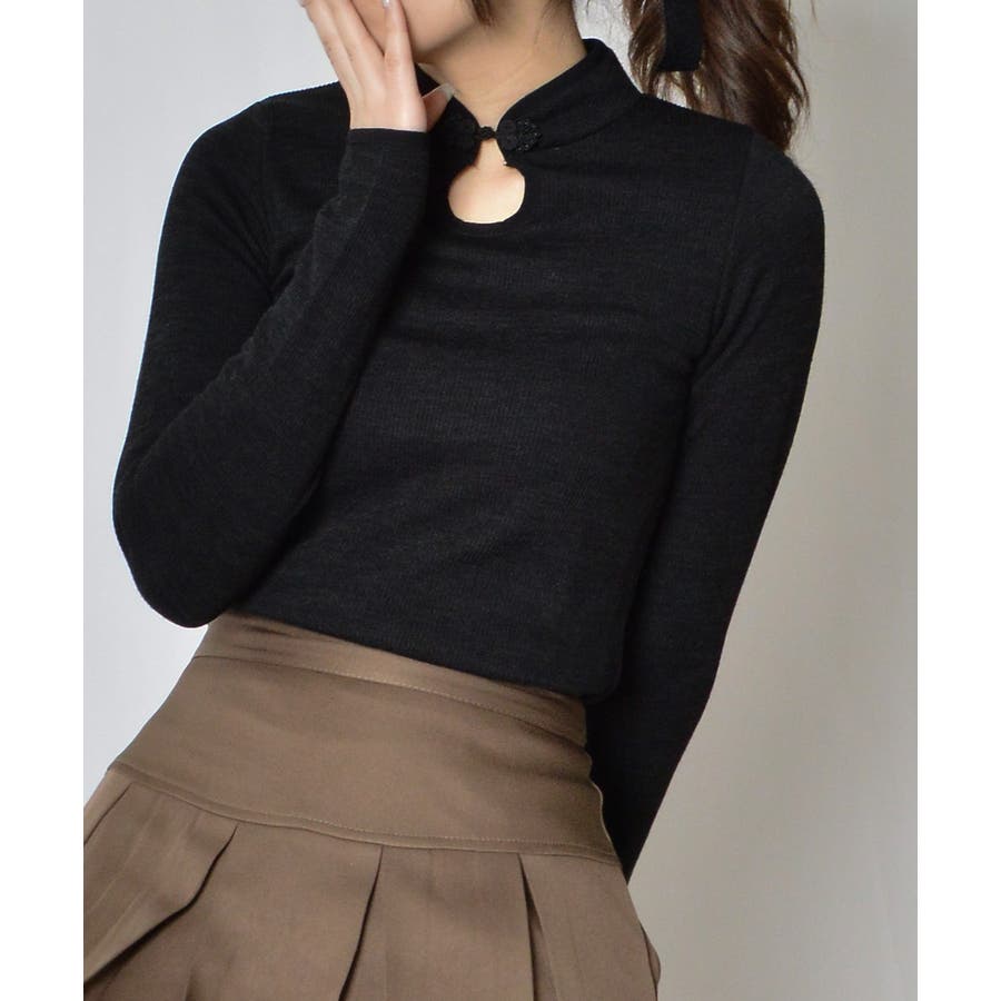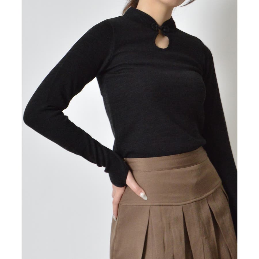 ニット チャイナ 春 冬 トップス モード きれいめ おしゃれ かわいい 大人 ガーリー シック かっこいい 指穴