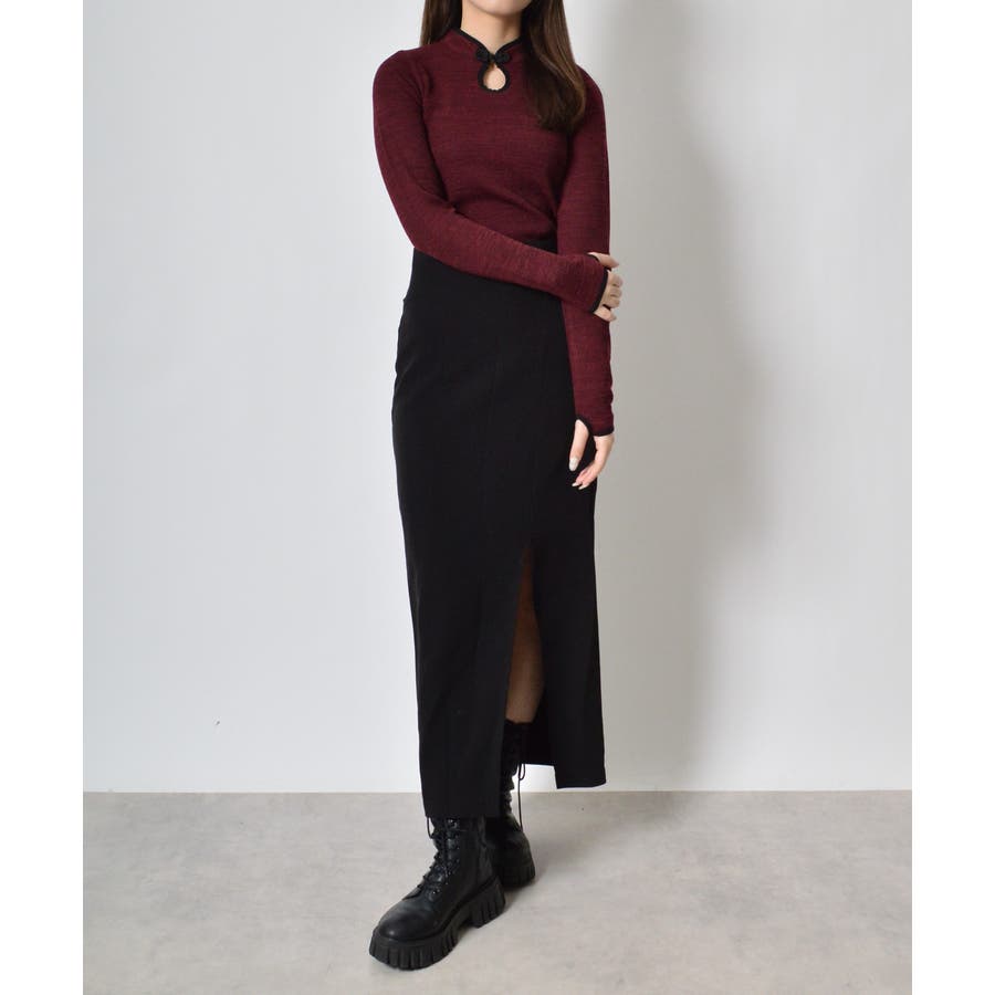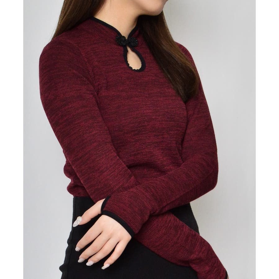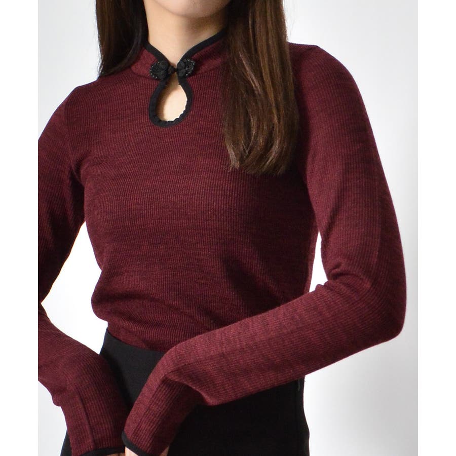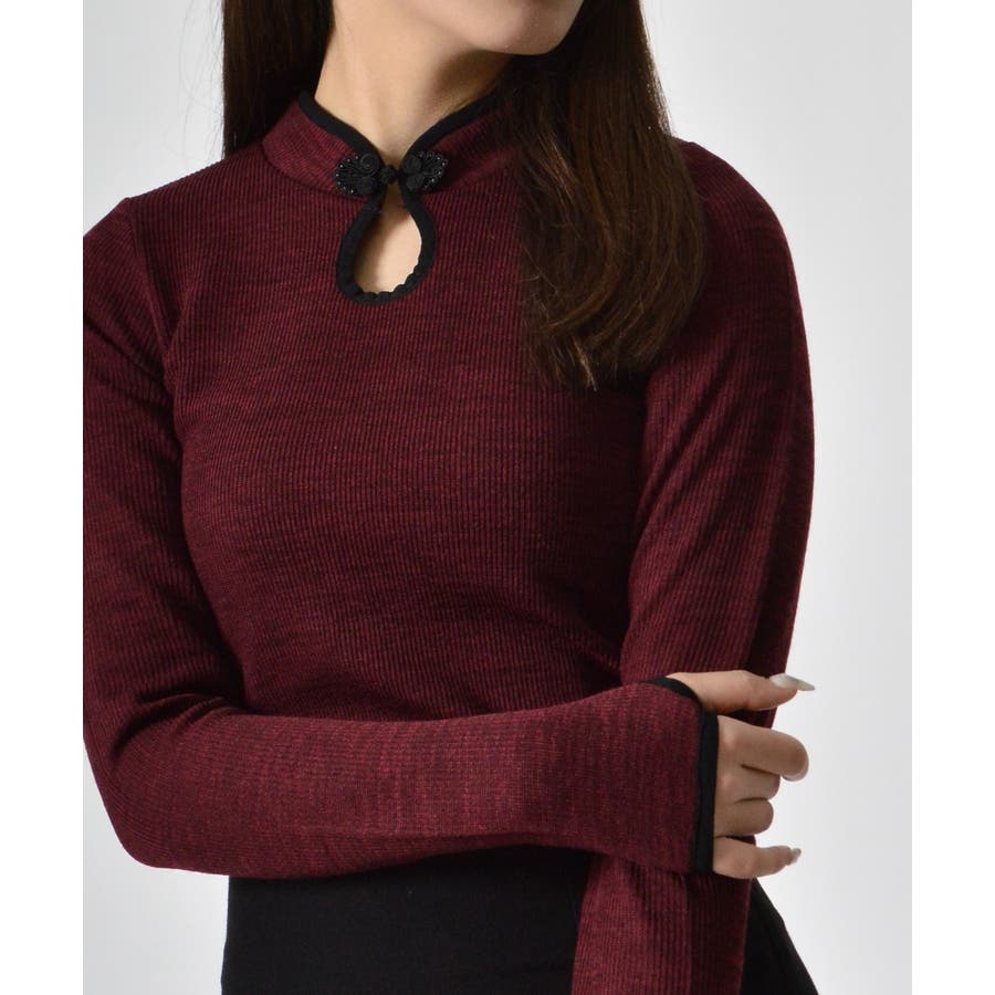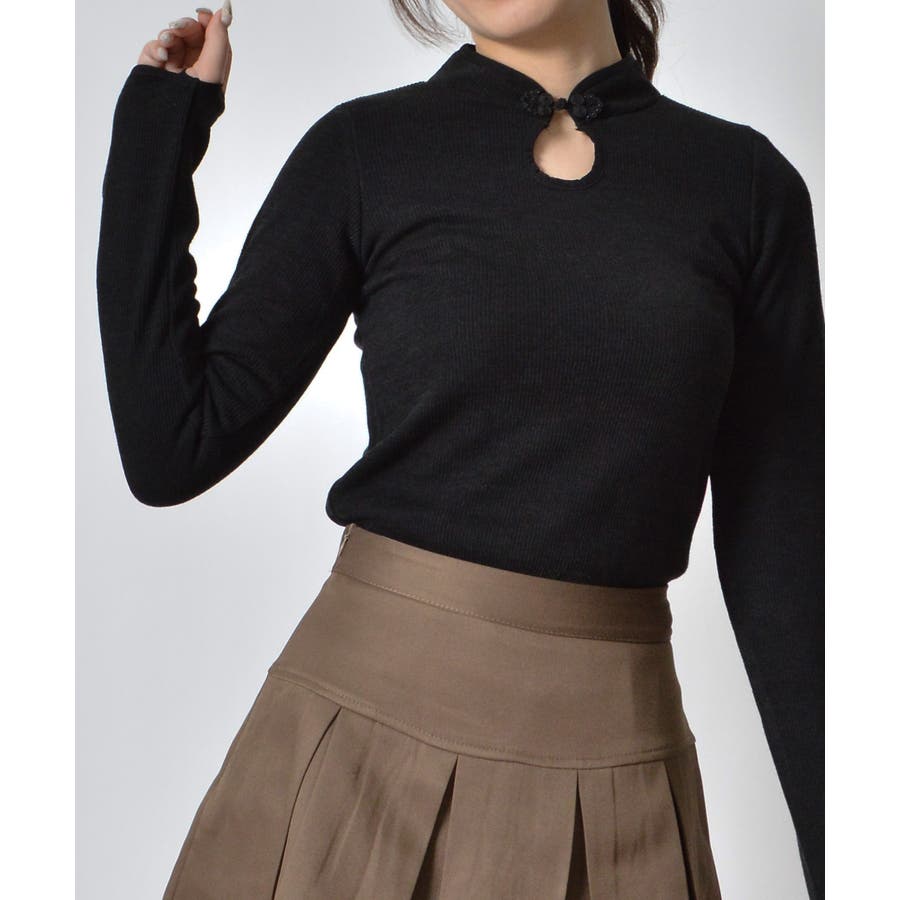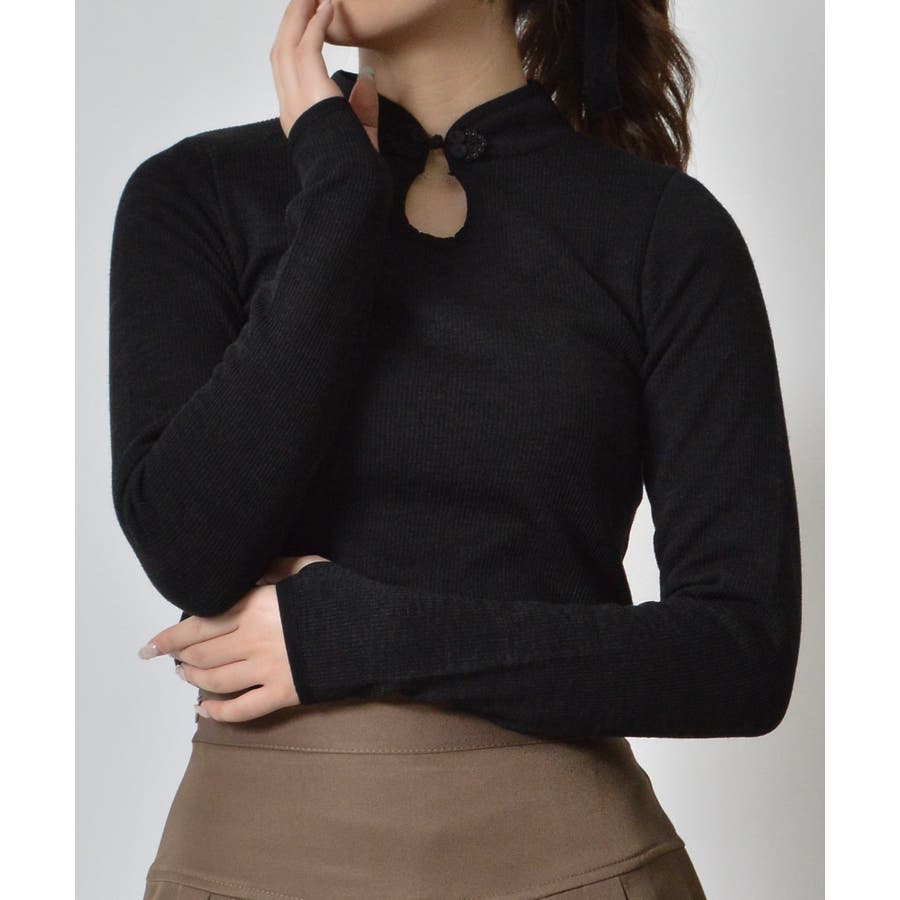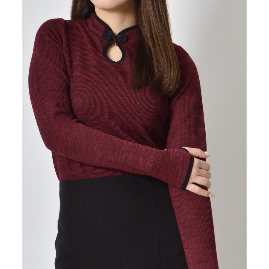 ニット チャイナ 春 冬 トップス モード きれいめ おしゃれ かわいい 大人 ガーリー シック かっこいい 指穴