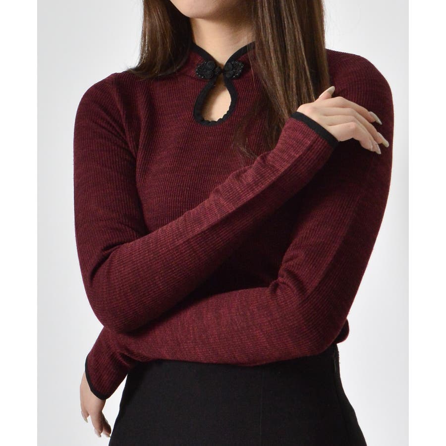 キレイめニットなのでさりげなくチャイナモチーフを取り入れたいときにもオススメ。