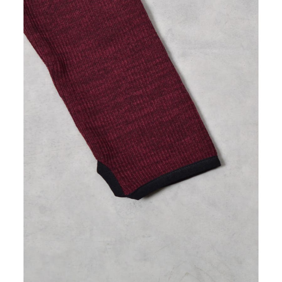 ・サムホール付きでトレンドのアームウォーマー風の着こなしも。