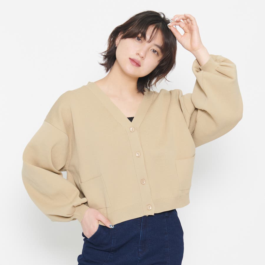 ボリュームスリーブショートカーディガン