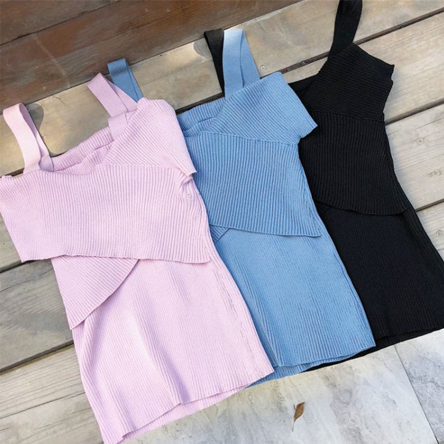 2WAY 韓国ファッションサマーニット オフショルニットトップス夏
