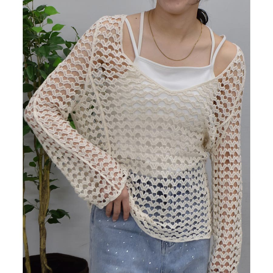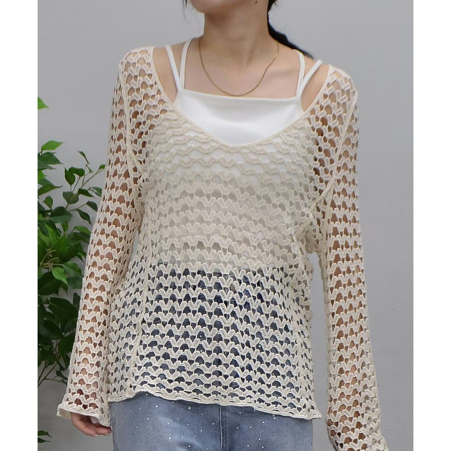 トップス ニットトップス 透かし編み 長袖 春 夏 秋 垢抜け 大人 カジュアル きれいめ 可愛い おしゃれ プチプラ 10代 20代 30代 トレンド 定番