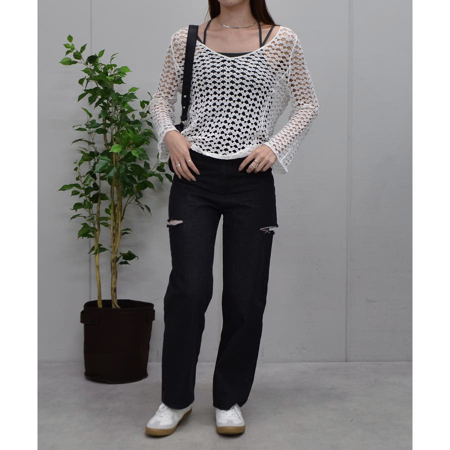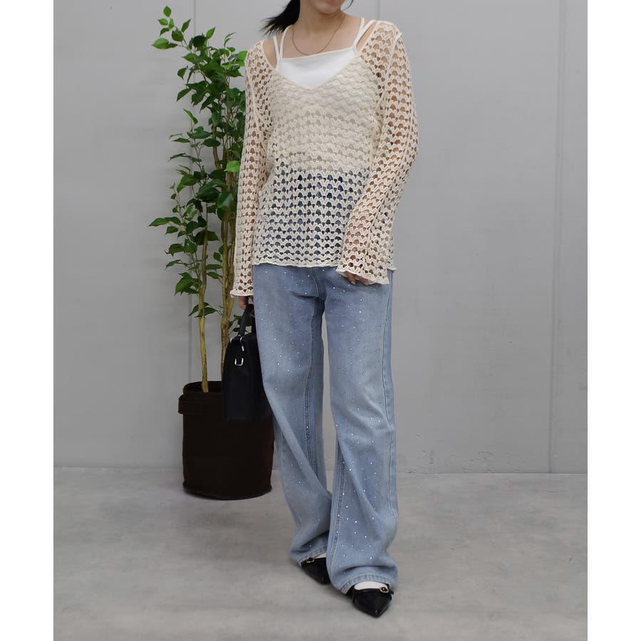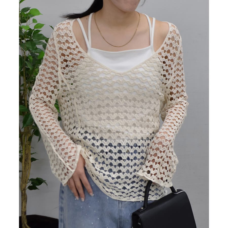 ・トレンド感のある透かし編みなので着用するだけでワンランクおしゃれに仕上がるアイテムです◎