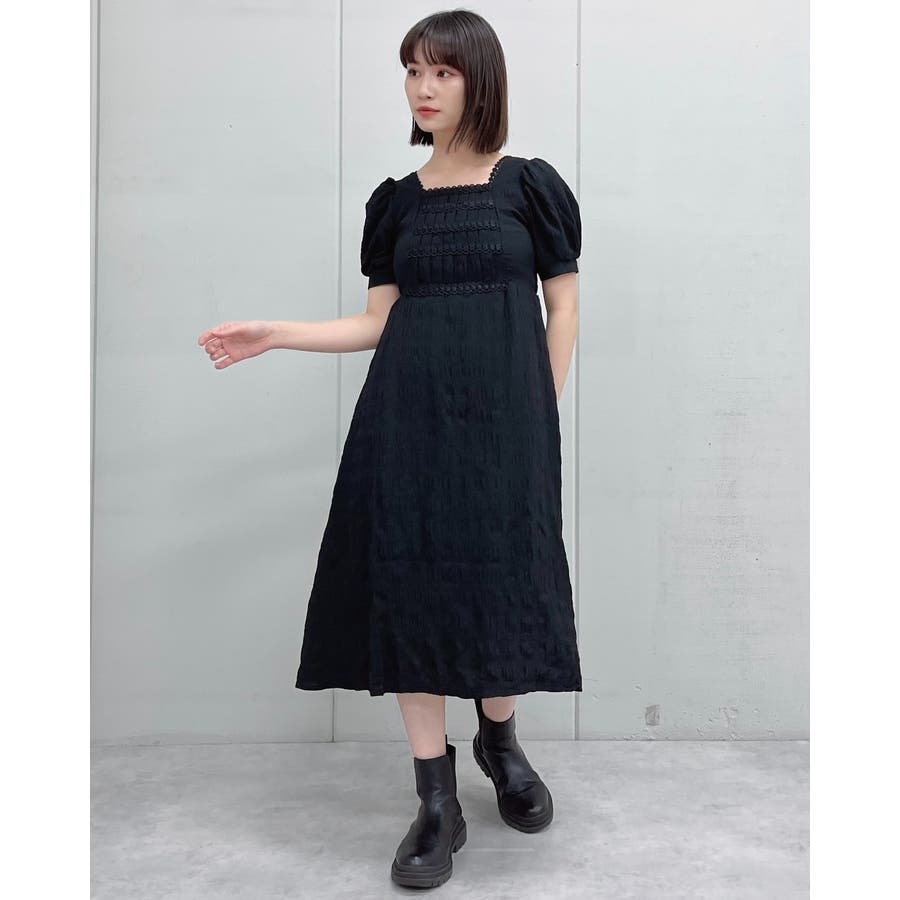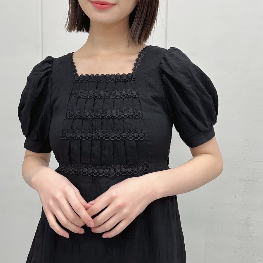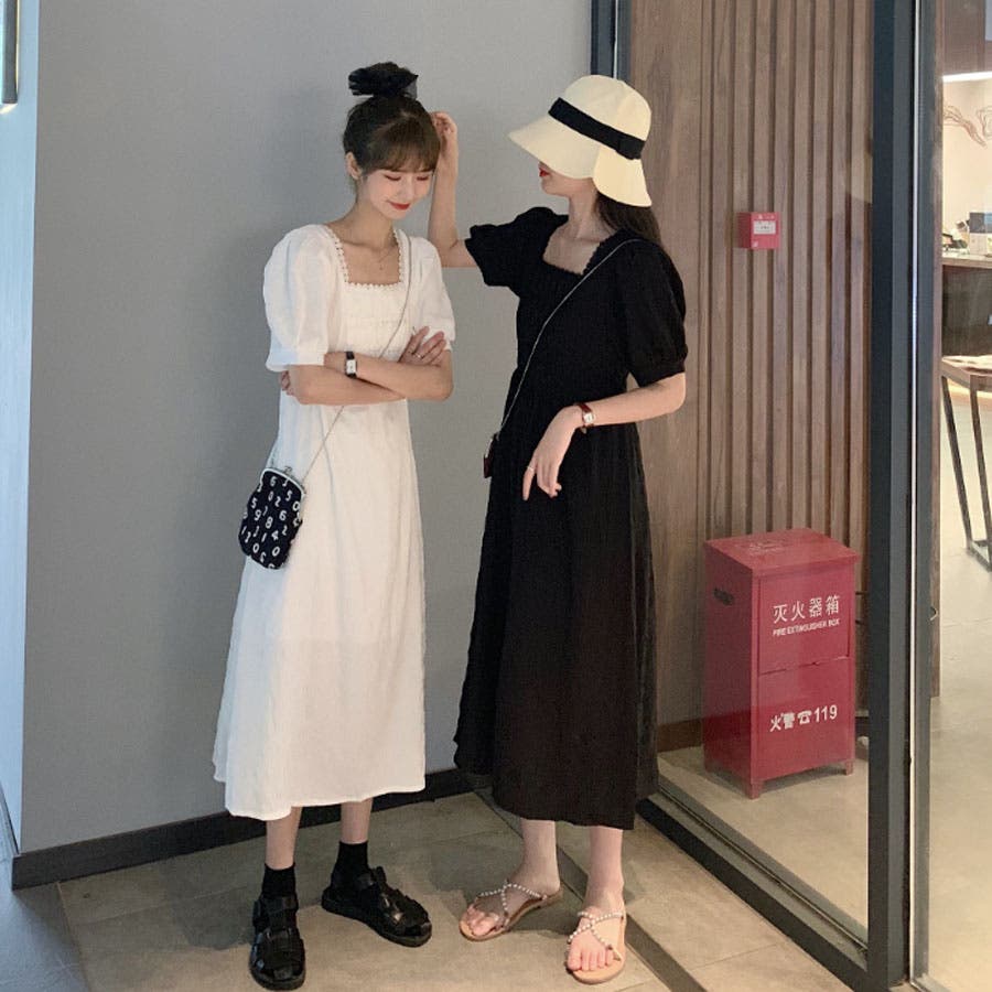 スクエアネック ワンピース 韓国ファッション 韓国かわいい 服 韓国ワンピース 韓国 ワンピース ブラック ワンピース 春 ワンピース 夏 ワンピース韓国 大人かわいい レース パフスリーブ 半袖