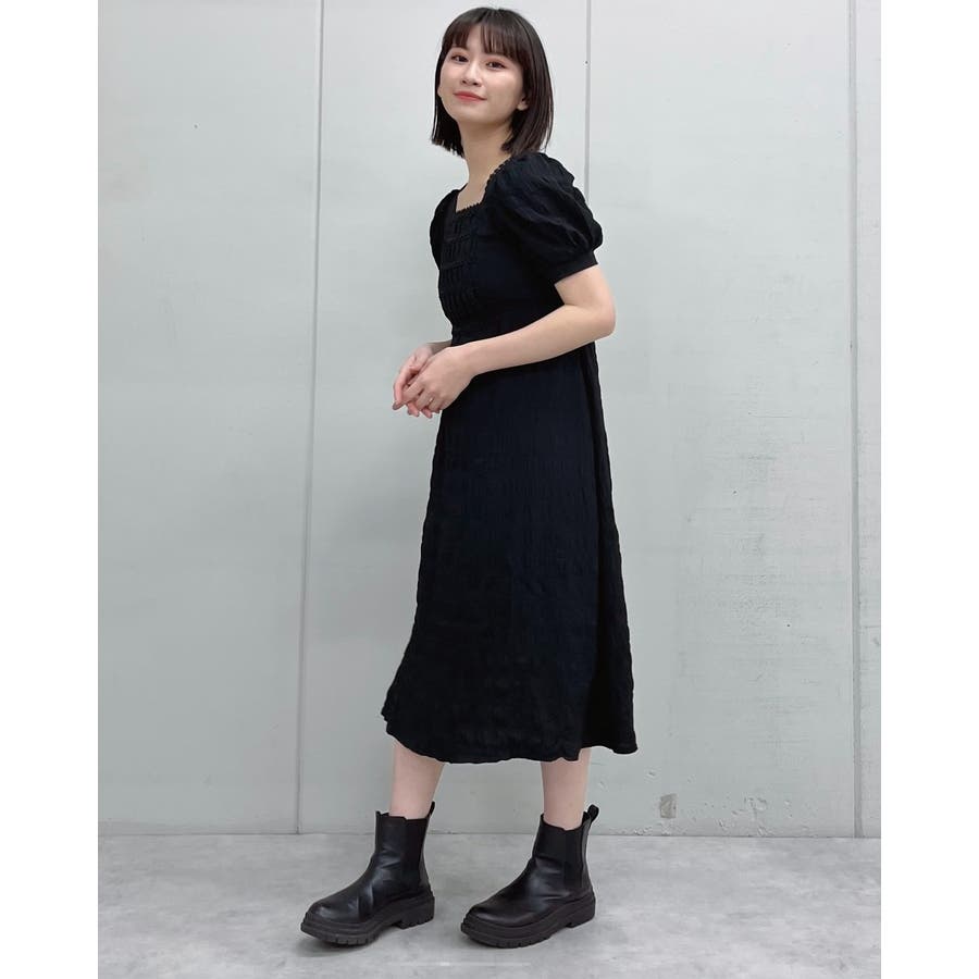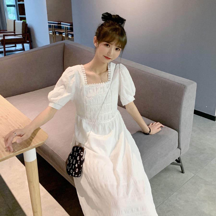 パフスリーブスクエアネックロングワンピース 韓国 ワンピース