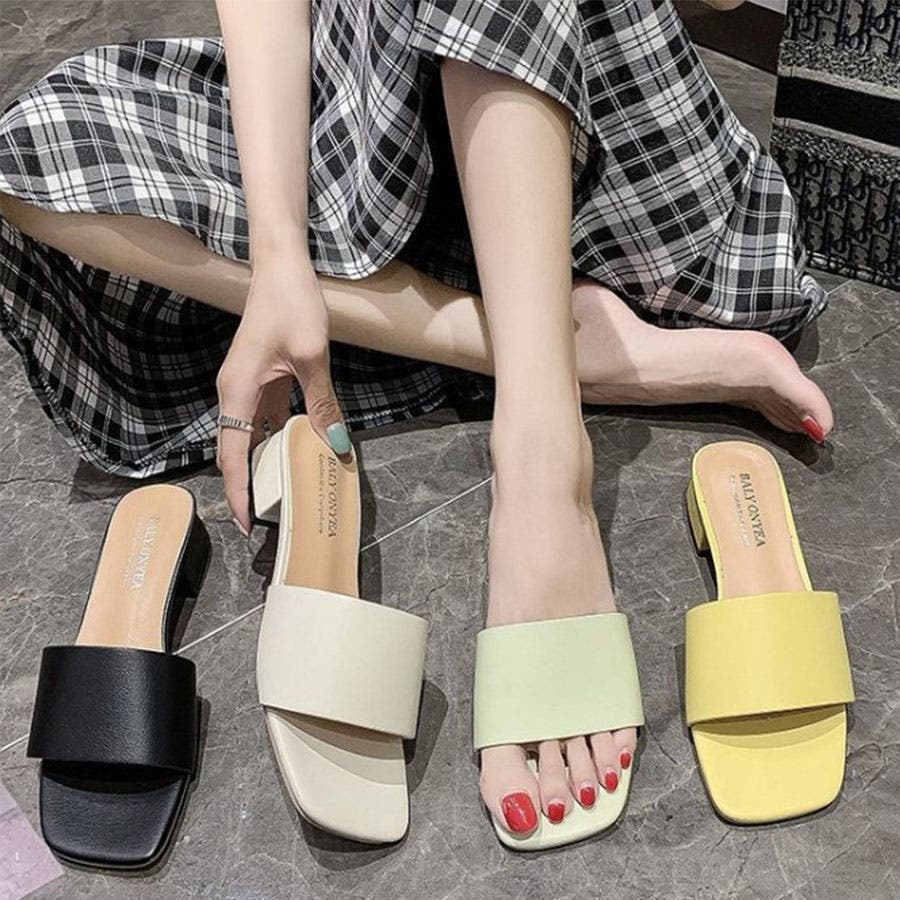 サンダルローヒール サンダル 夏 サンダル ぺたんこ 韓国ファッション 韓国かわいい