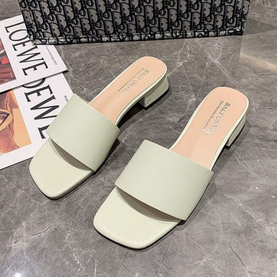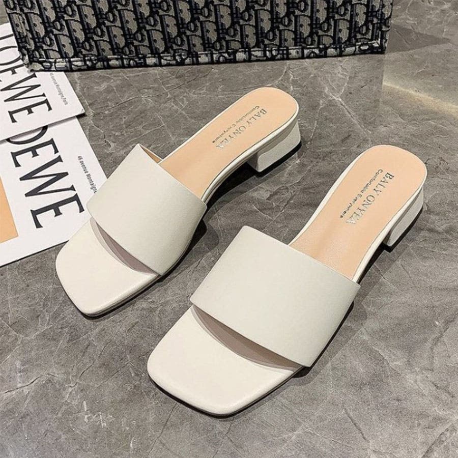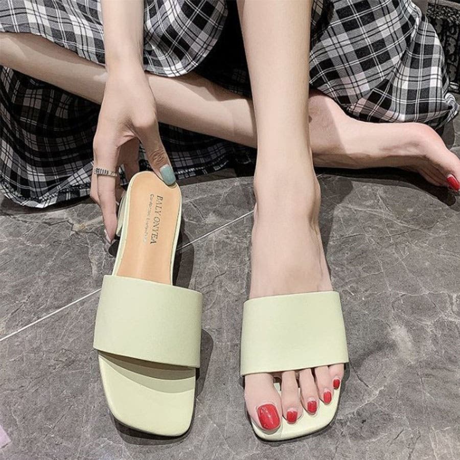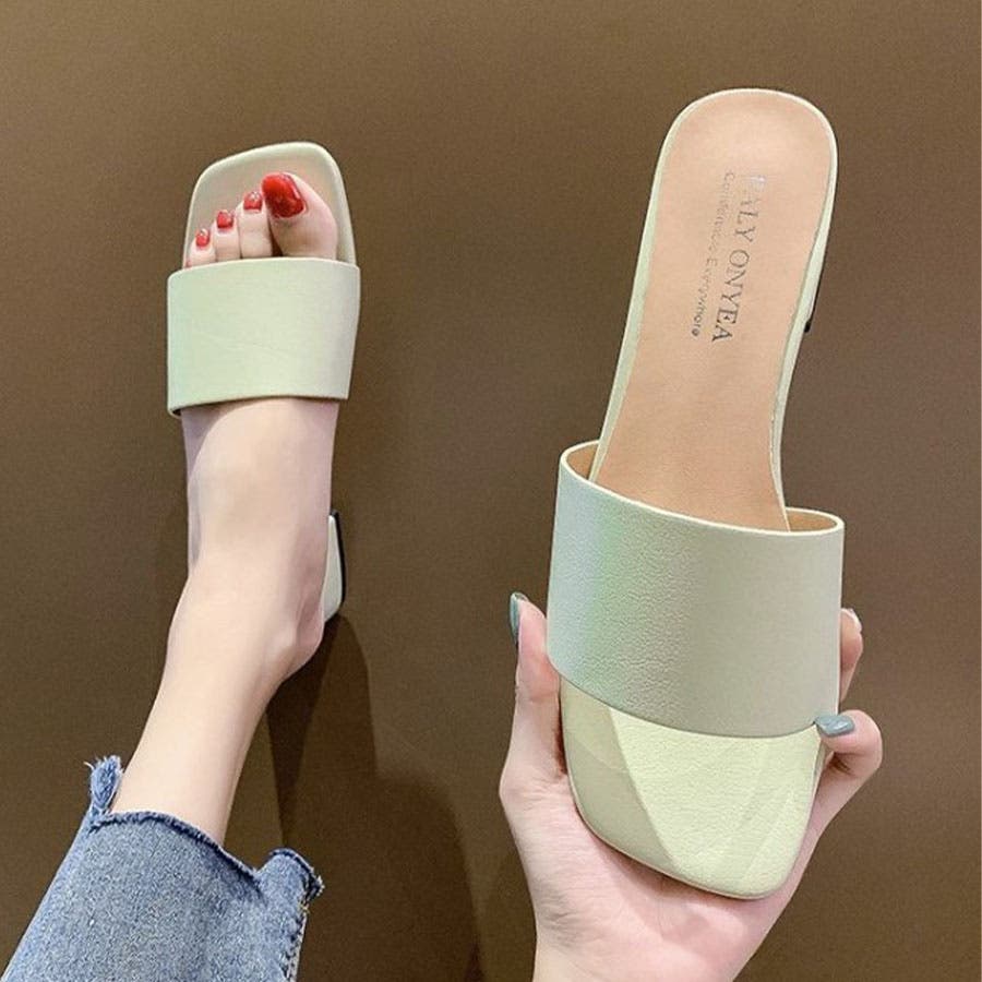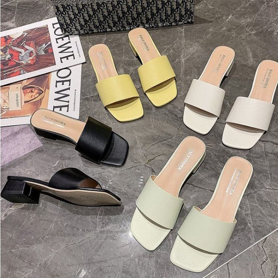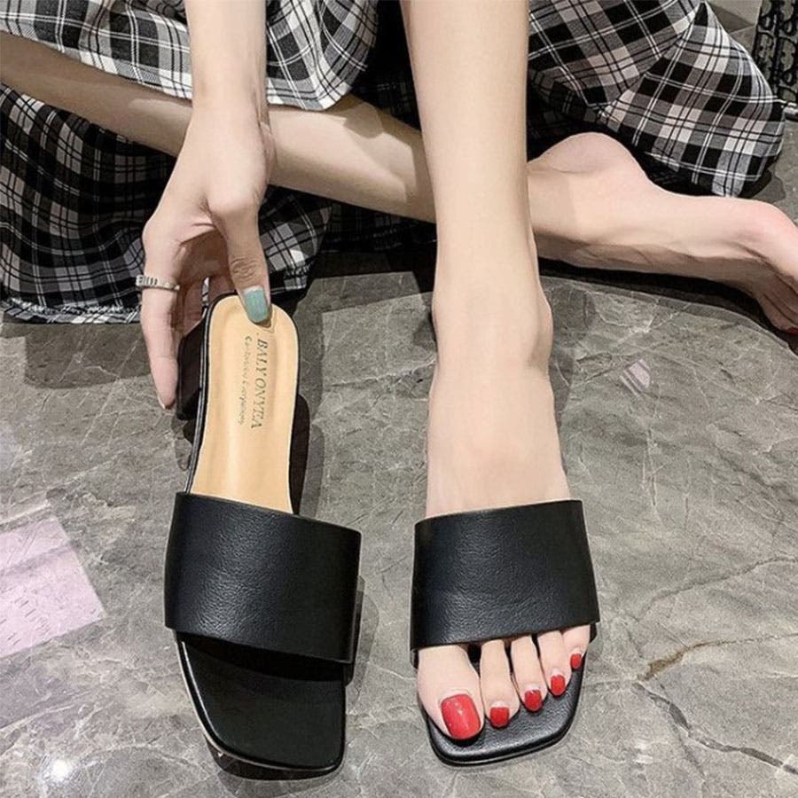 韓国ファッションローヒールサンダル ぺたんこサンダル スクエアトゥサンダル