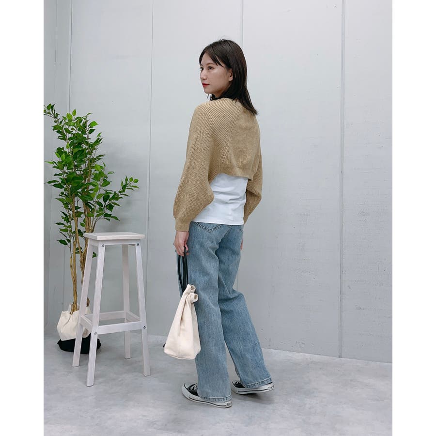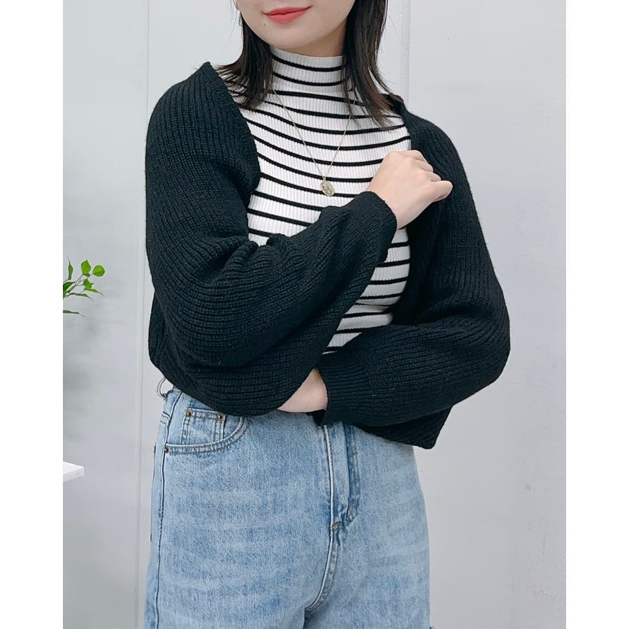 ボレロ ボレロニット ボレロカーディガン ニットカーディガン シンプル トップス ニットソー カジュアル ニット 大人 羽織り クロップド クロップド丈 ショート丈 短丈 長袖 ボリュームスリーブ 韓国系 韓国風 韓国ファッション プチプラ