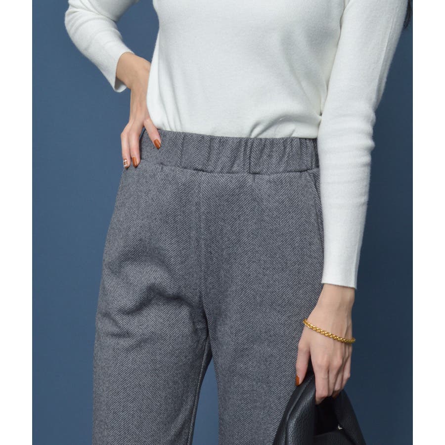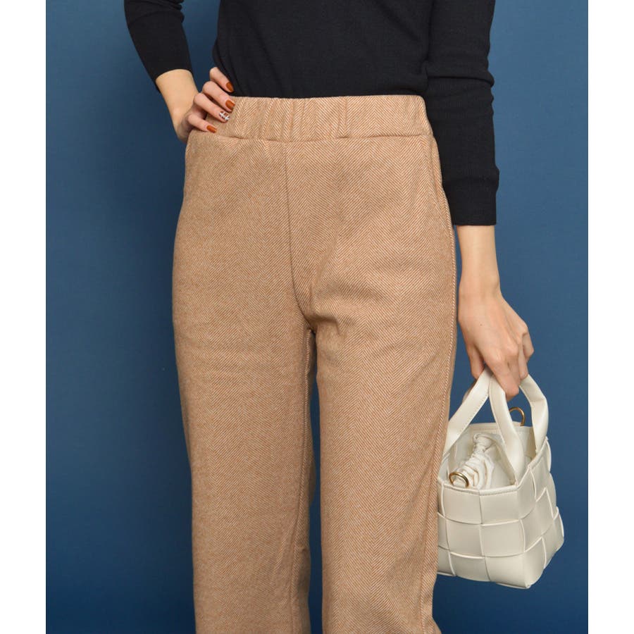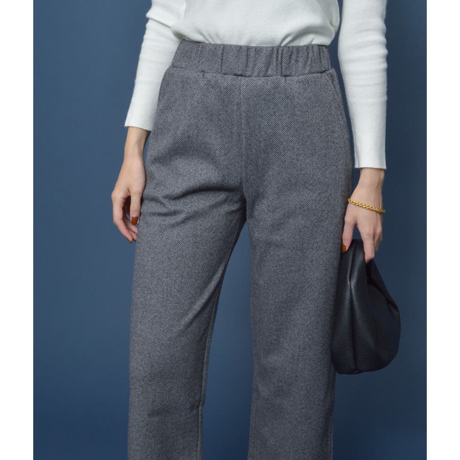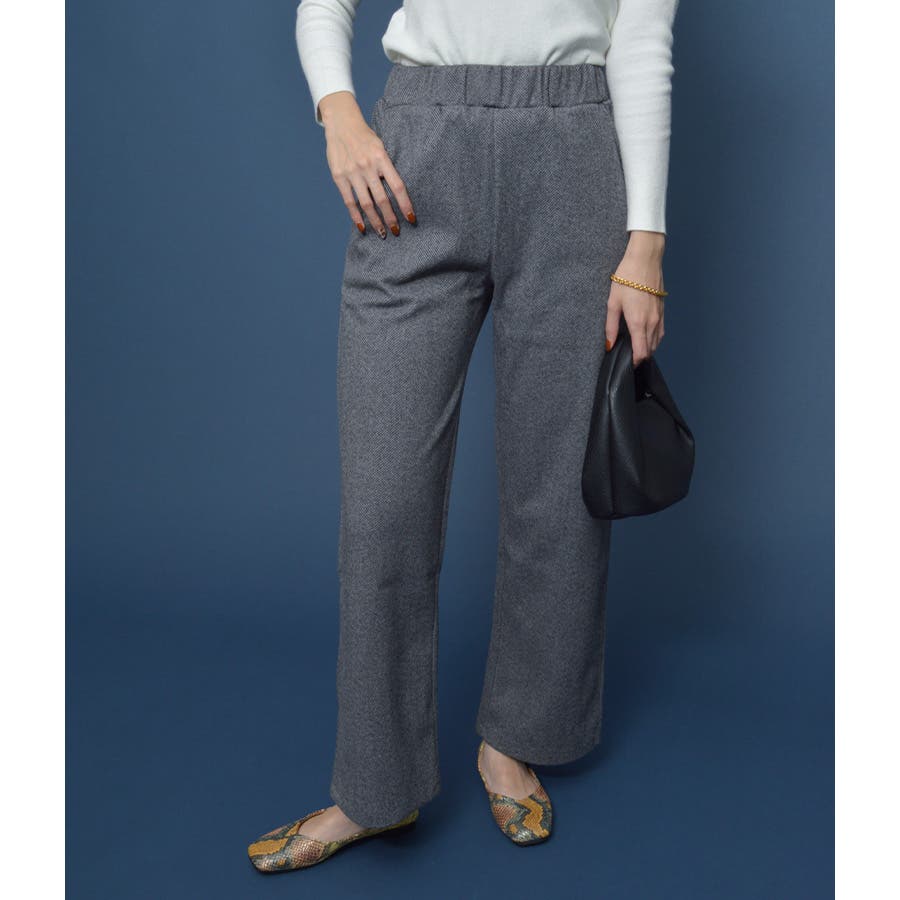 ヘリンボーンストレートパンツ(ウエストゴム)