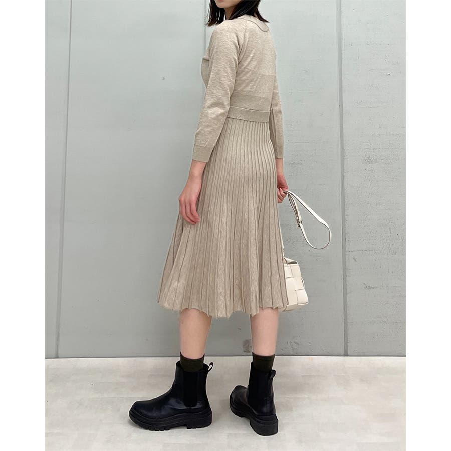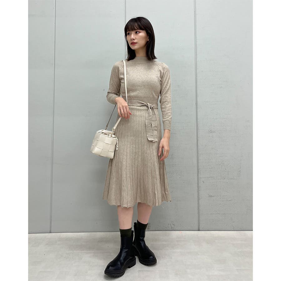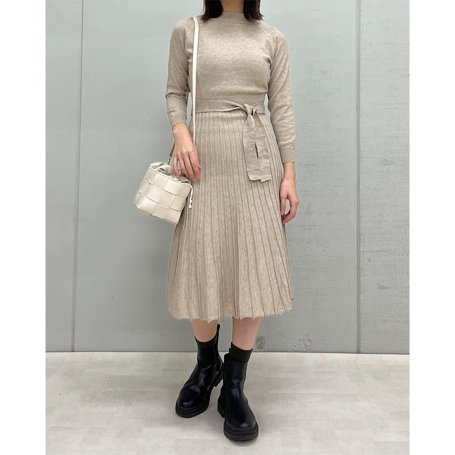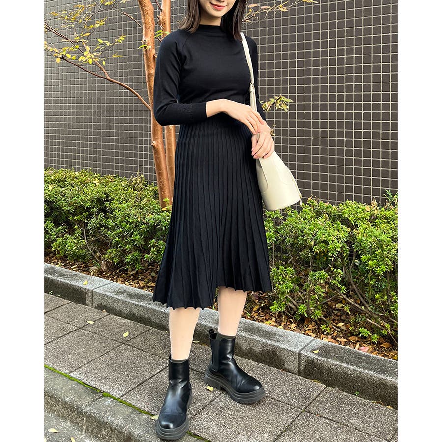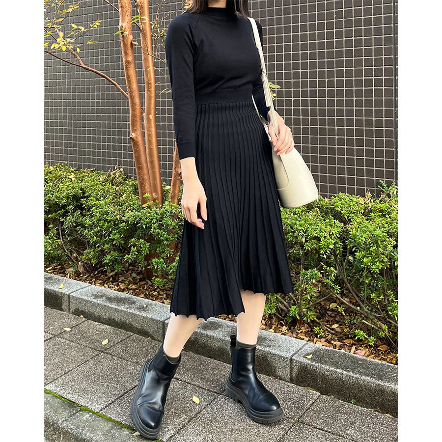 ニット×プリーツの組み合わせがシンプルなデザインなのに新鮮な印象を与えてくれて、周りと差をつける一枚。