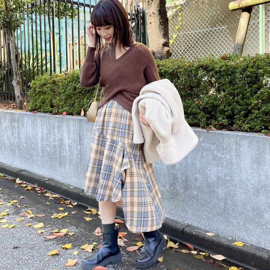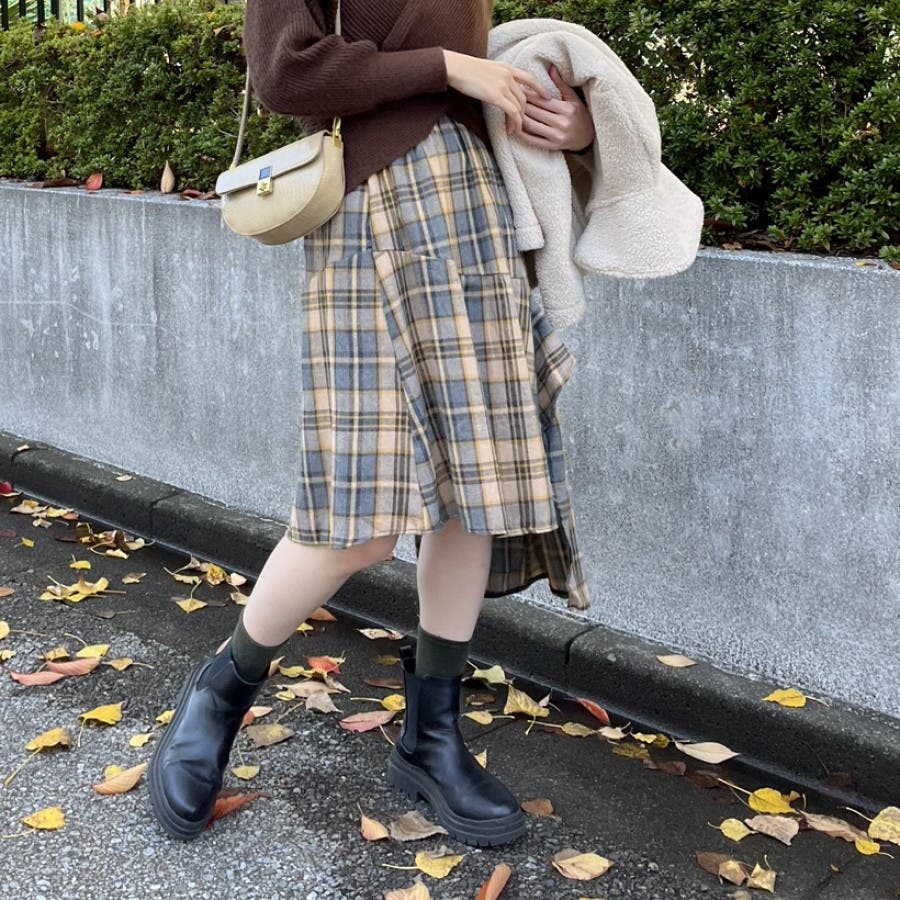 ・歩くたびに揺れるチェック柄がおしゃれ度をプラスします。
