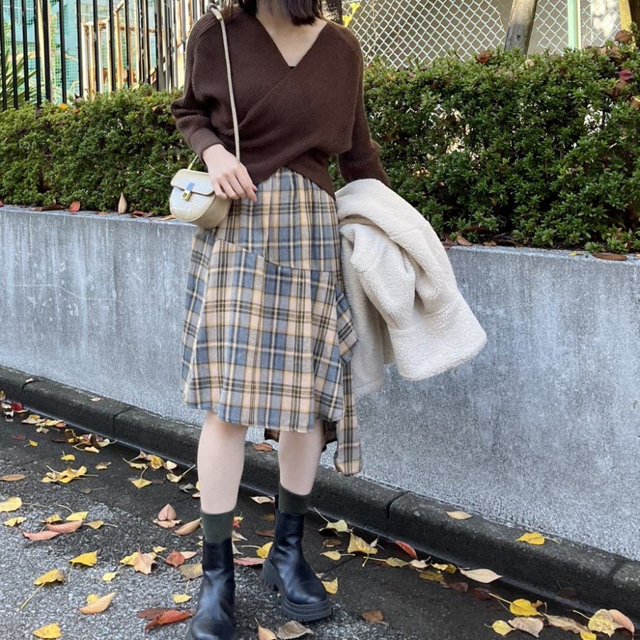 スカート ボトムス カジュアル チェック 格子 大人 上品 きれいめ ワンマイルウェア 散歩 お出かけ 大人かわいい 清楚 ナチュラル シンプル オフィスカジュアル OL 重ね着 プチプラ