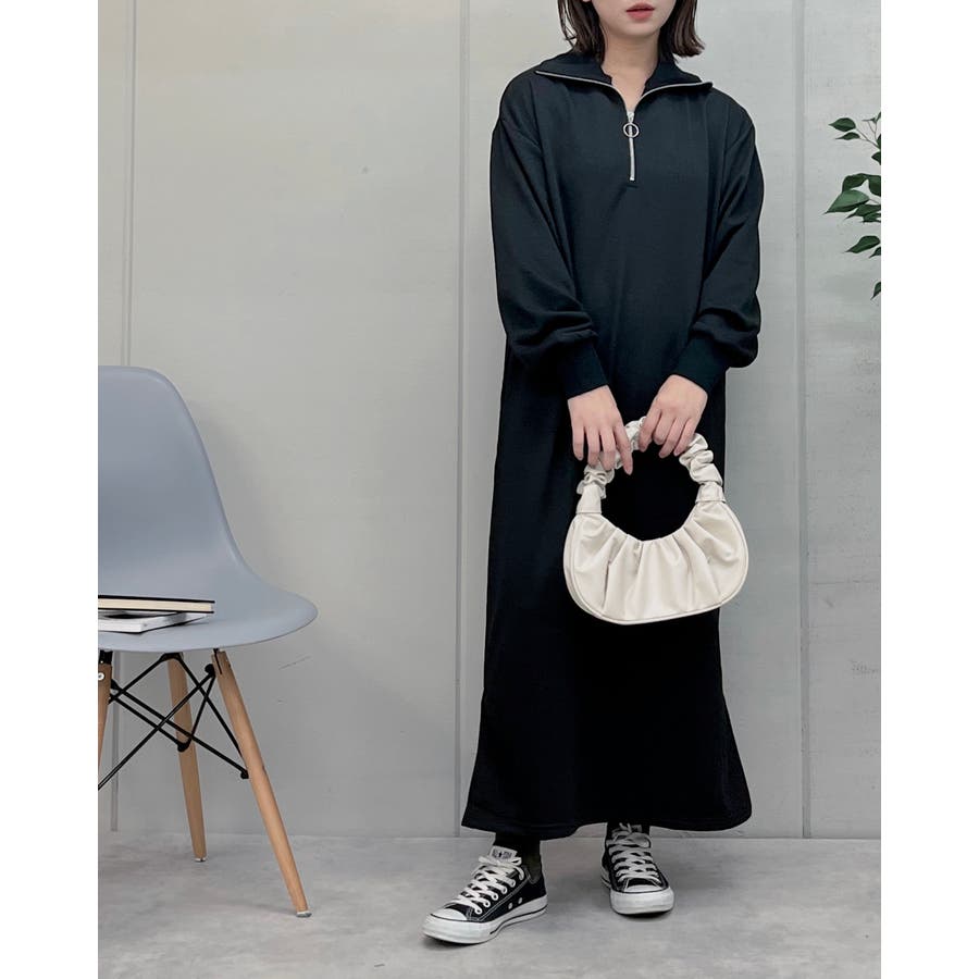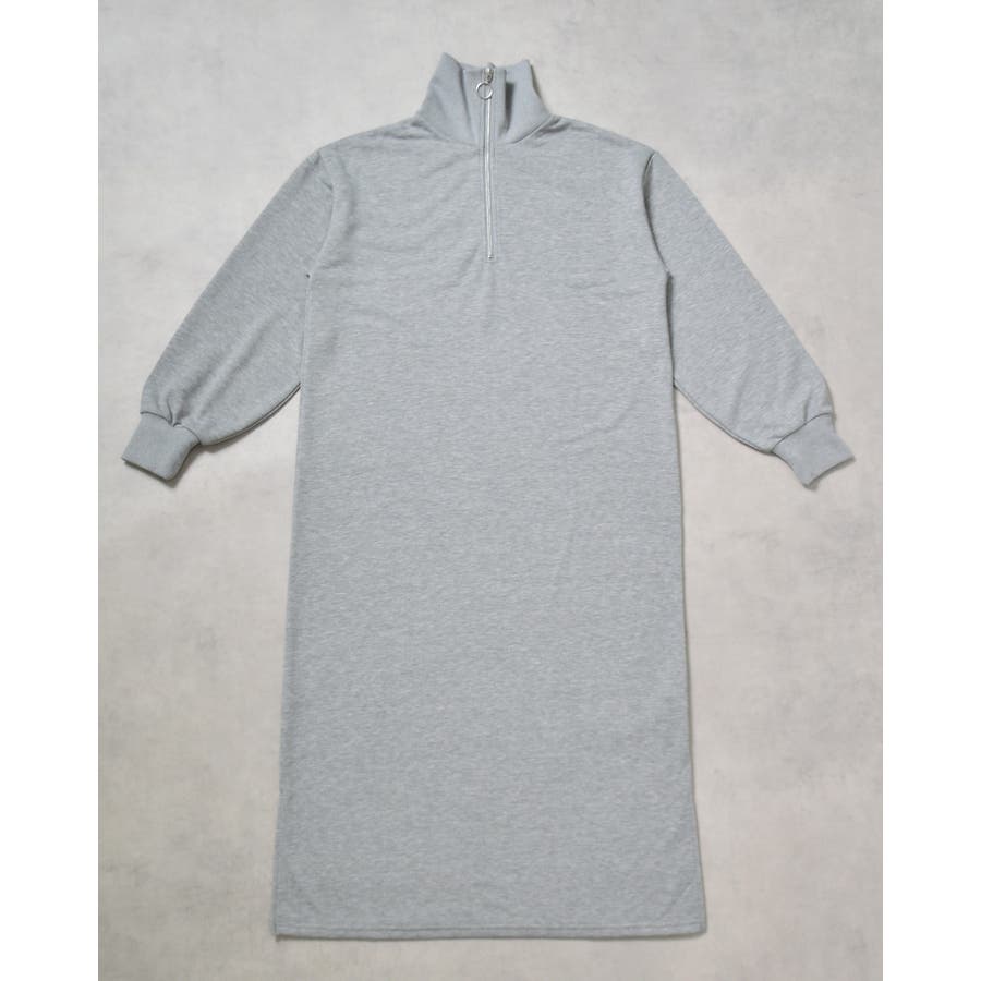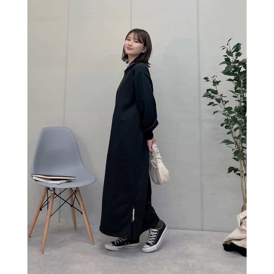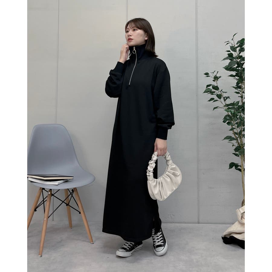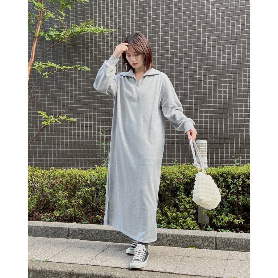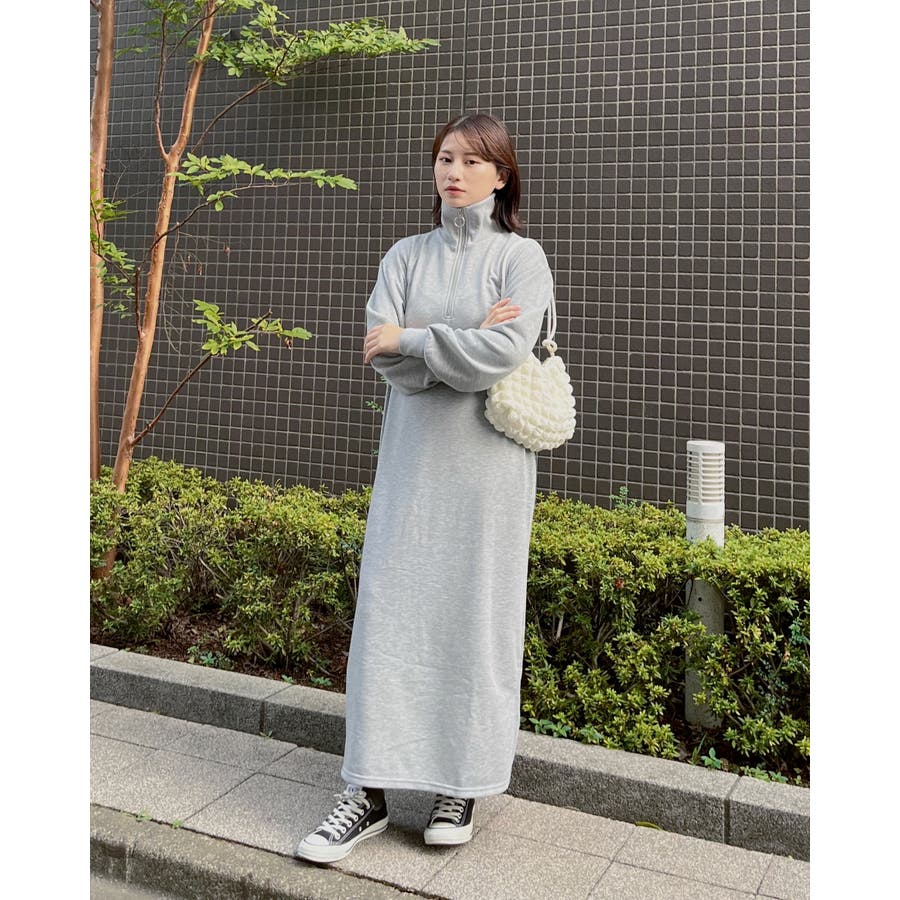 スウェットハーフジップマキシワンピース