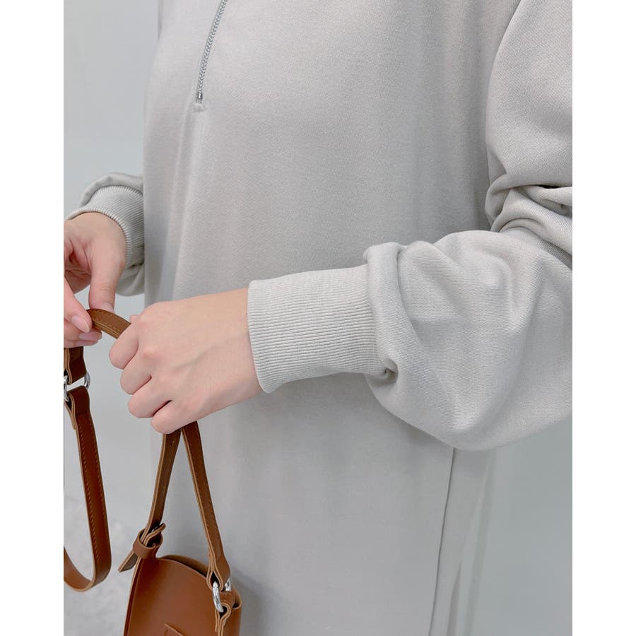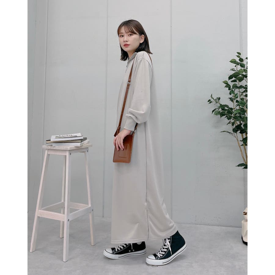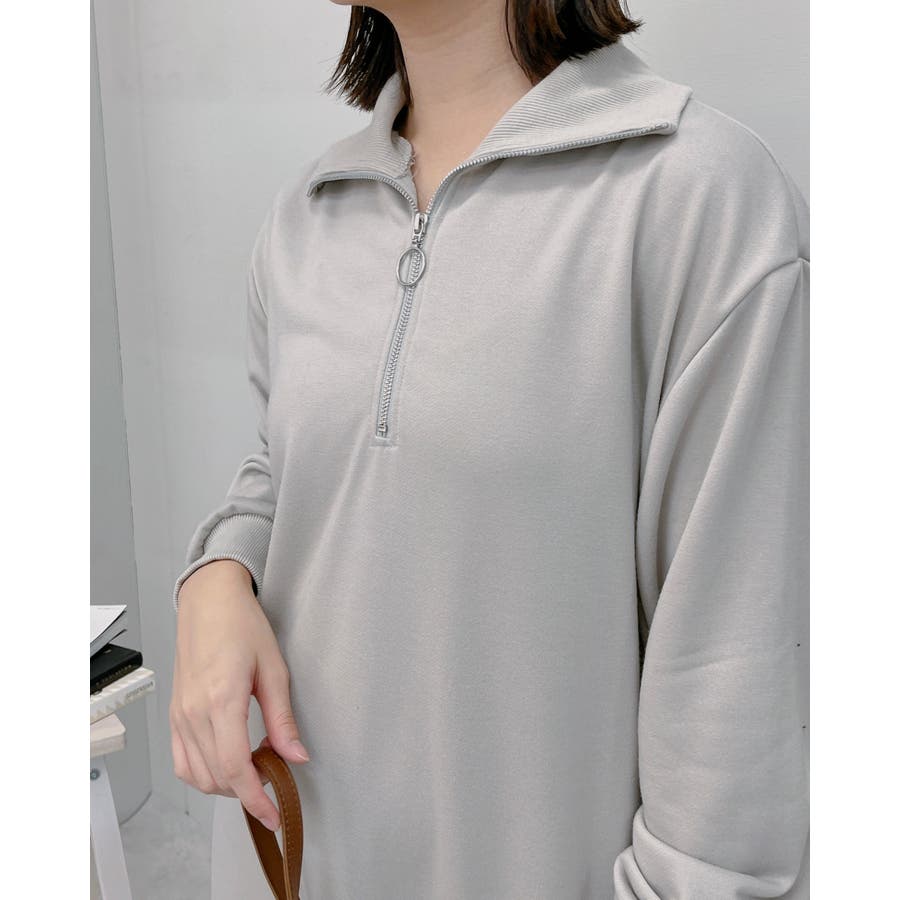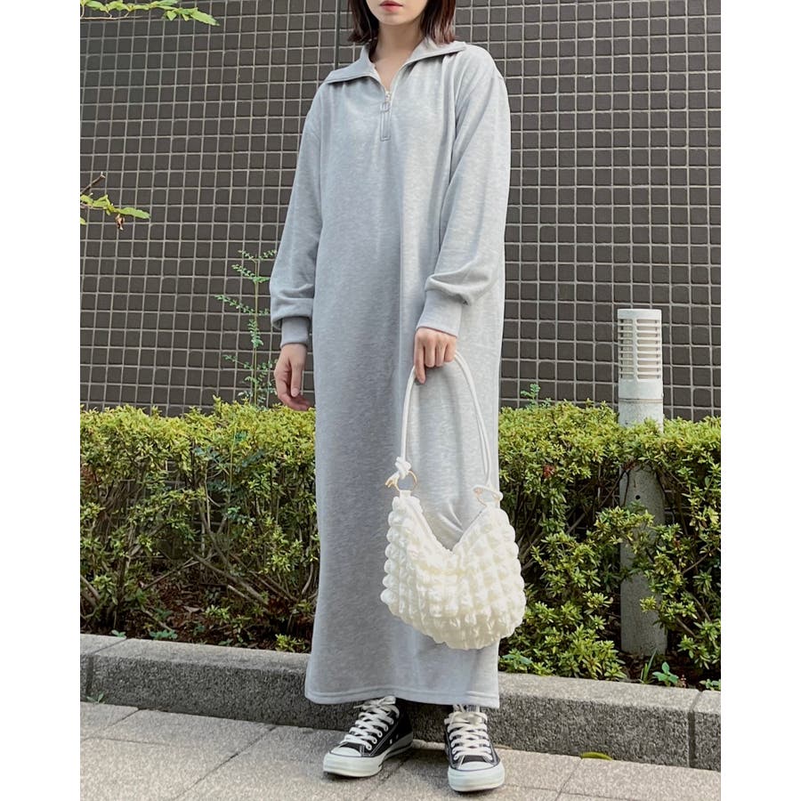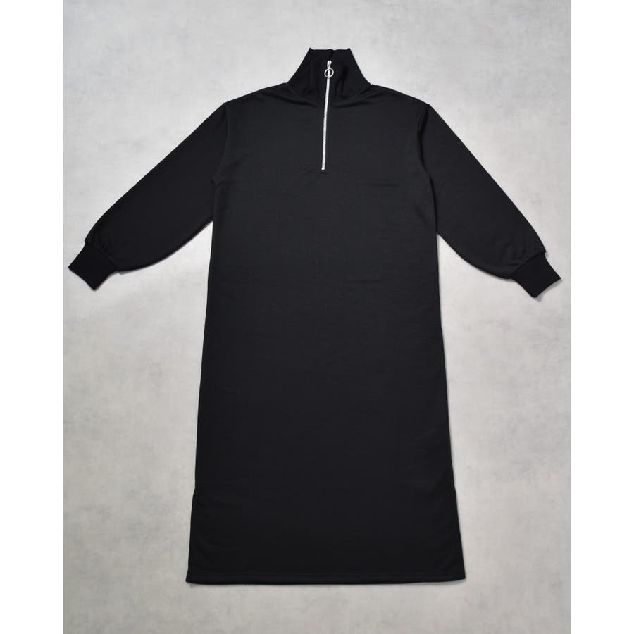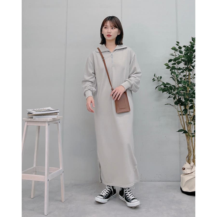 スウェットハーフジップマキシワンピース