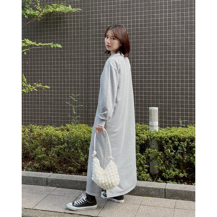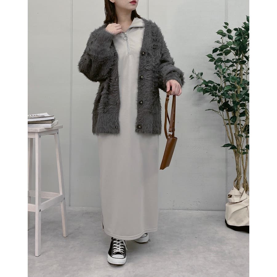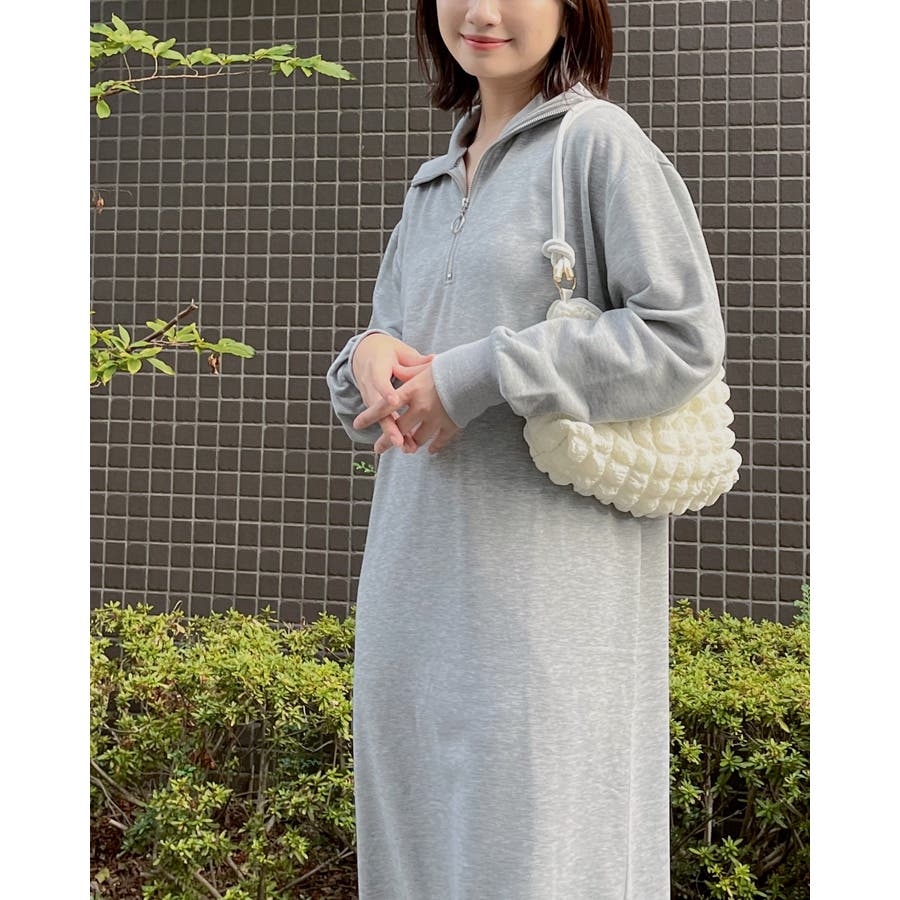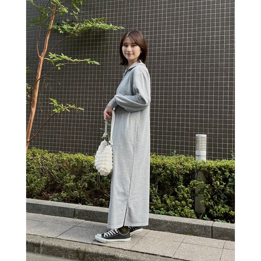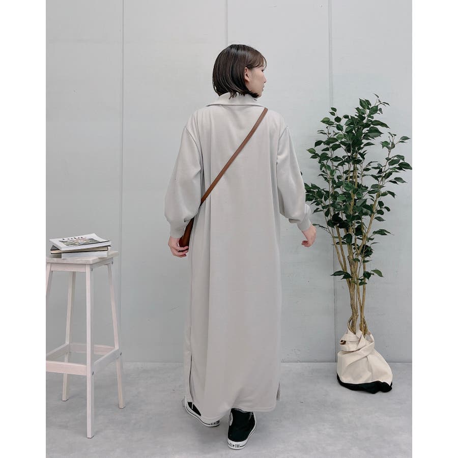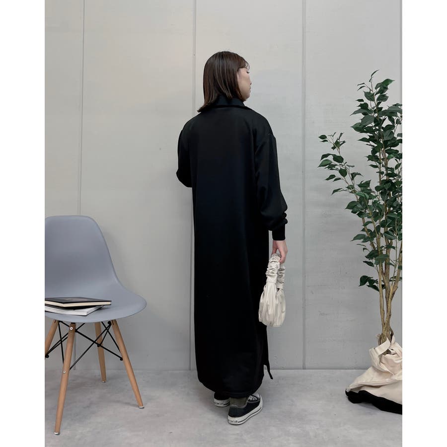 スウェットハーフジップマキシワンピース