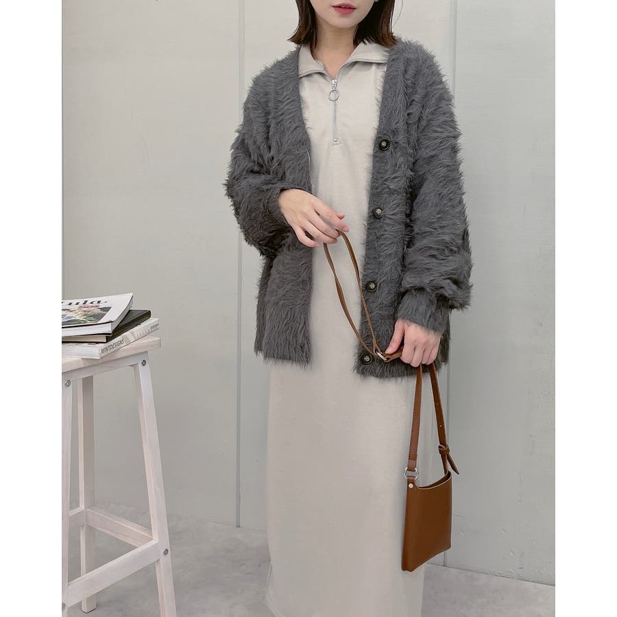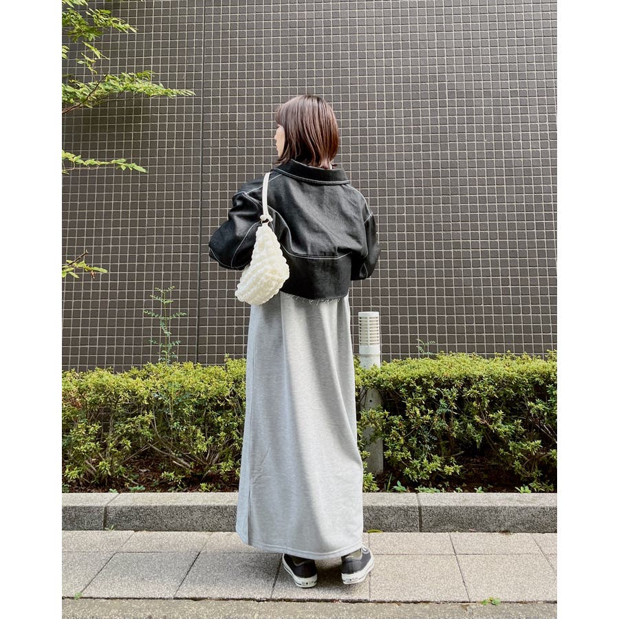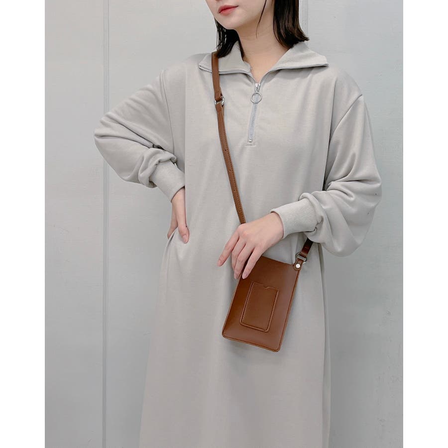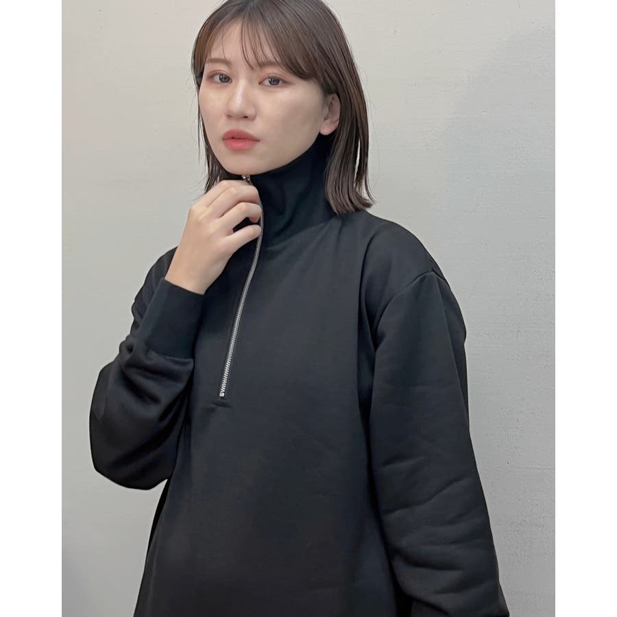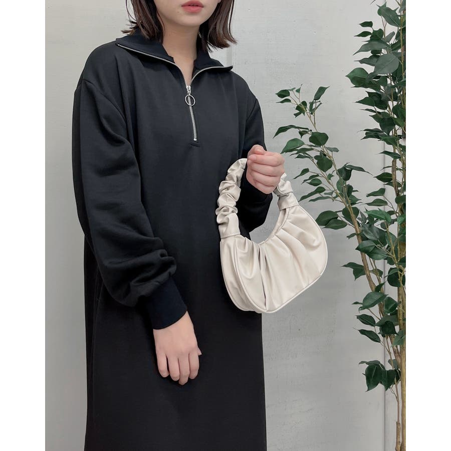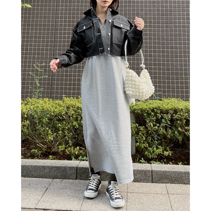 スウェットハーフジップマキシワンピース