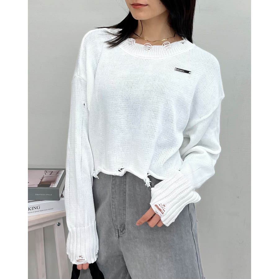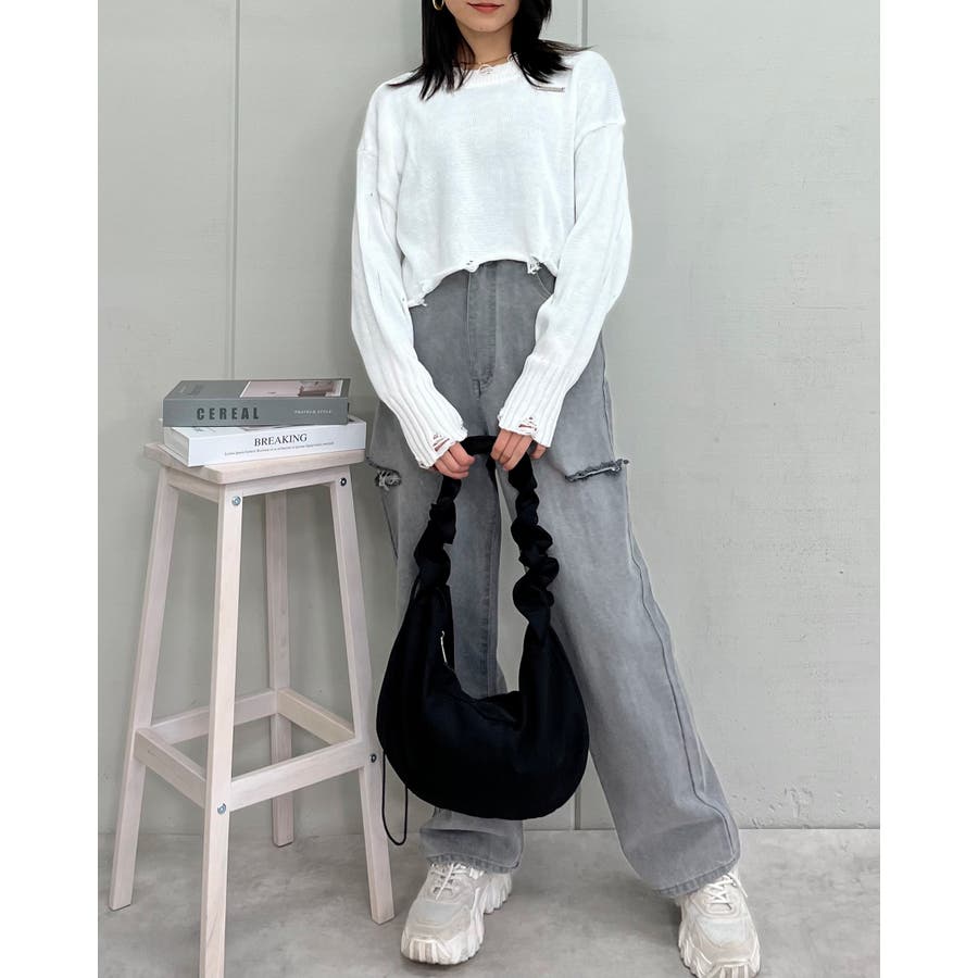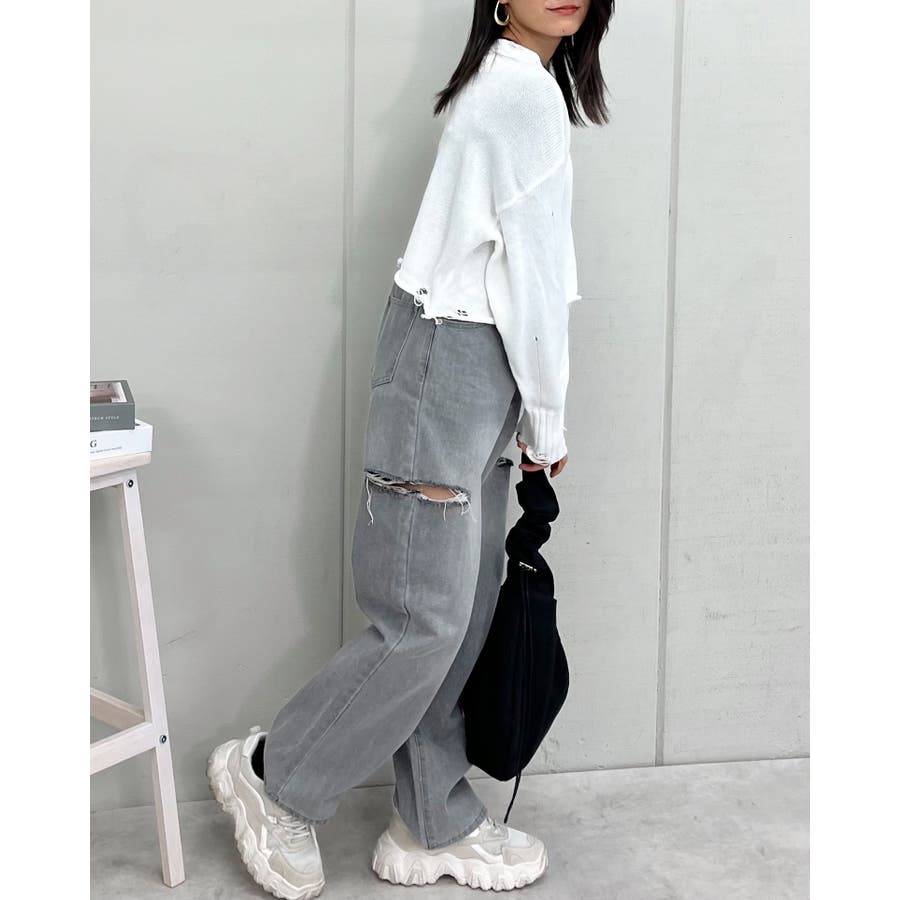 ・程よいダメージ加工が施されていることで、こなれ感UP!