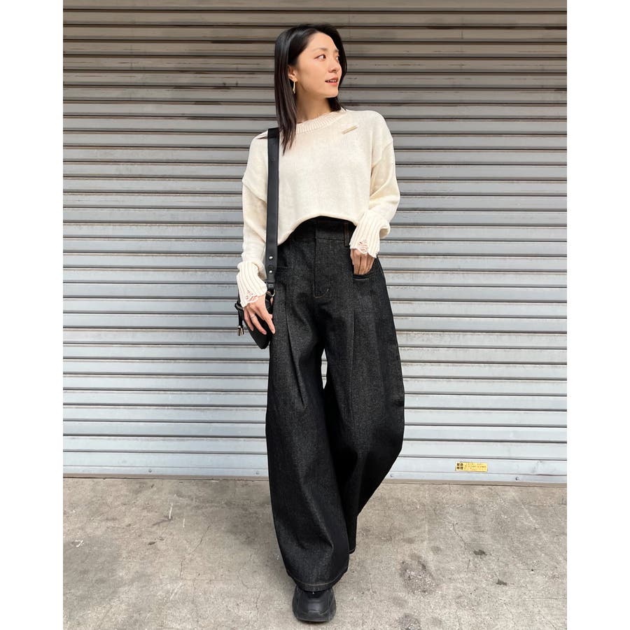 ・定番のワイドデニムやロングスカートとの合わせが◎