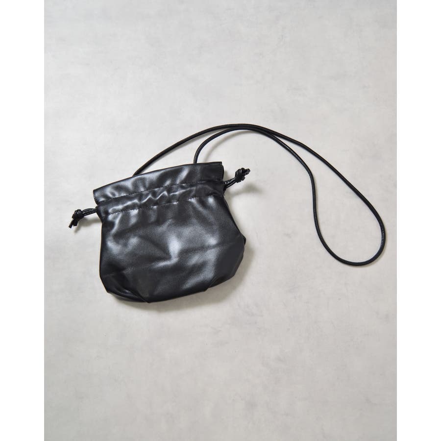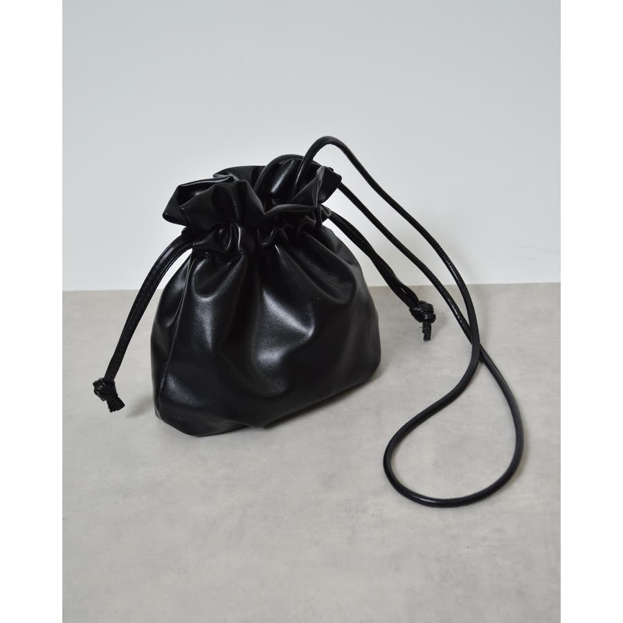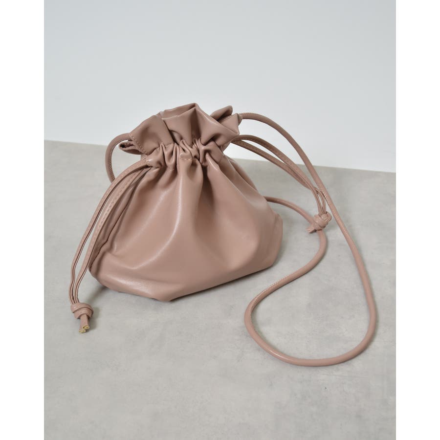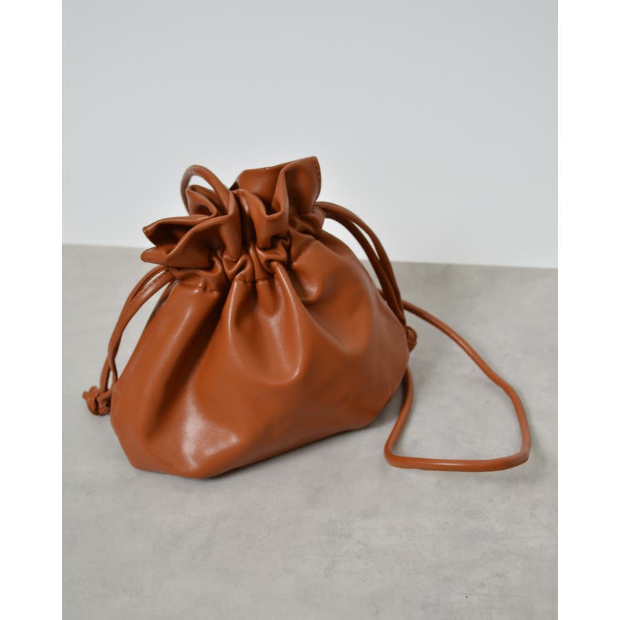 PUレザー巾着ショルダーバッグ
