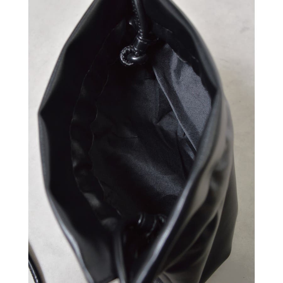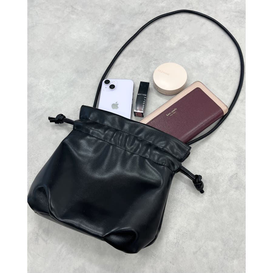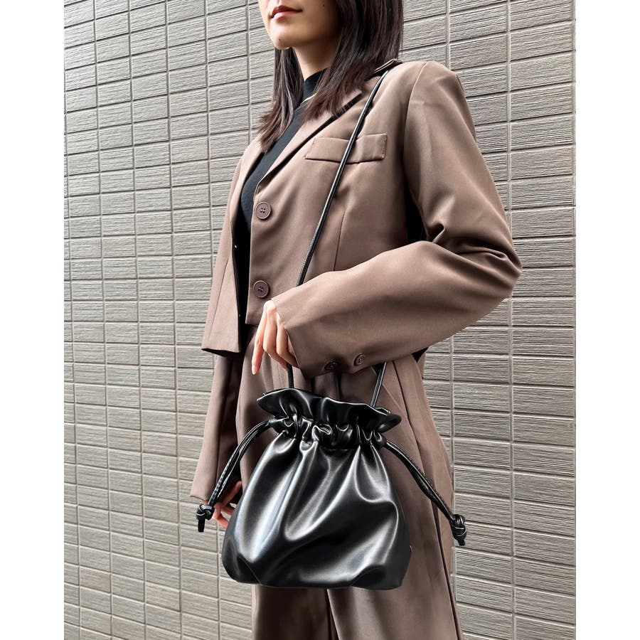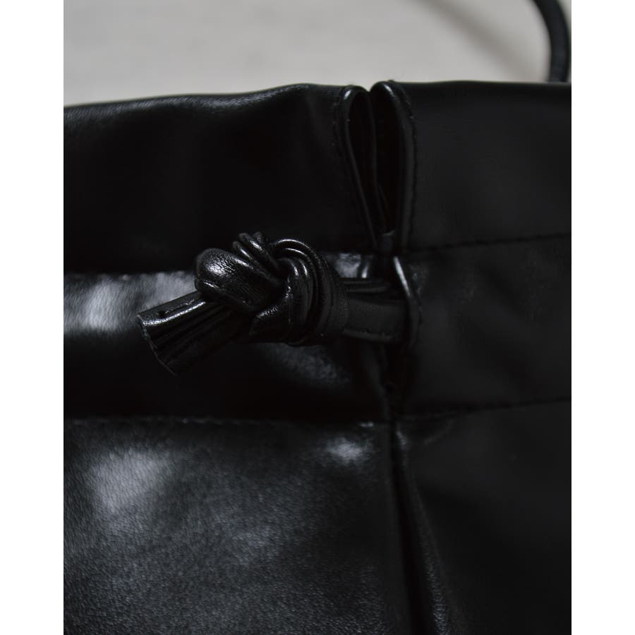 PUレザー巾着ショルダーバッグ