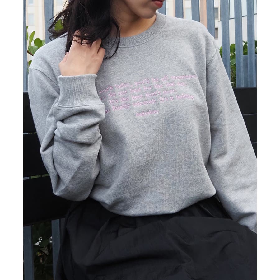 メッセージ刺繍裏毛スウェットクルーネックプルオーバー