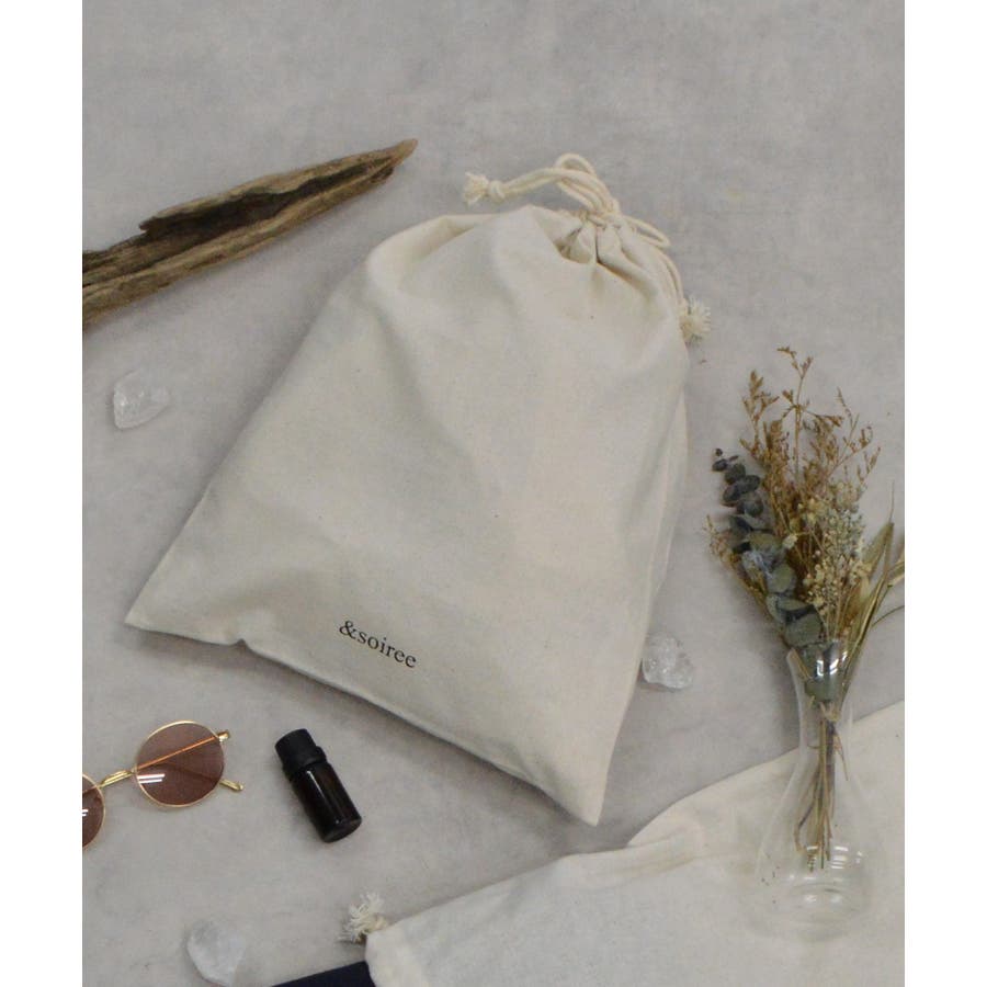 ・&soireeオリジナルのプリントロゴ入り・柔らかな生成りカラーでナチュラルな雰囲気・紐をキュッと絞るだけで簡単に閉じられる巾着仕様