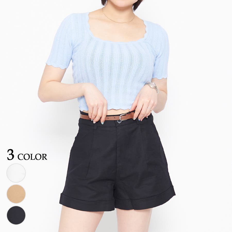 ベルト付きハイウエストショートパンツ ミニ丈 ショーパン セクシー 夏