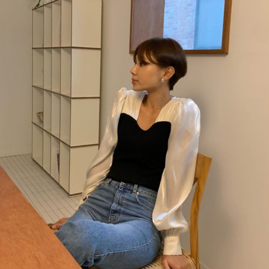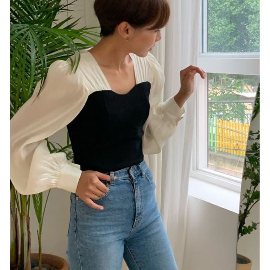 #ニット/#ブラウス/#フェミニン/#OL/#オフィスカジュアル/#韓国/#エレガント/#カジュアル/#清楚
