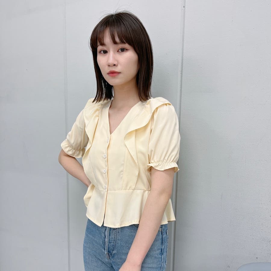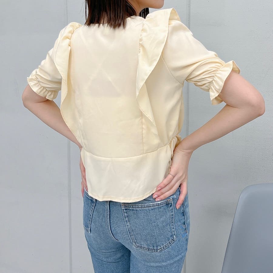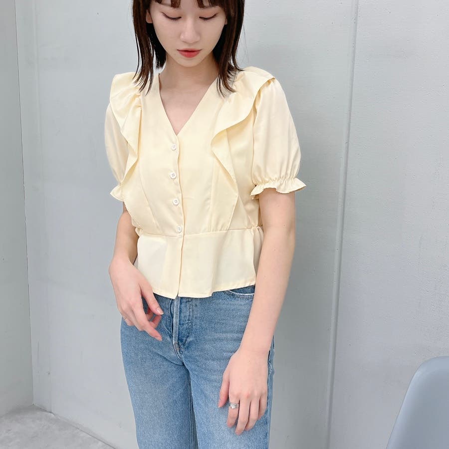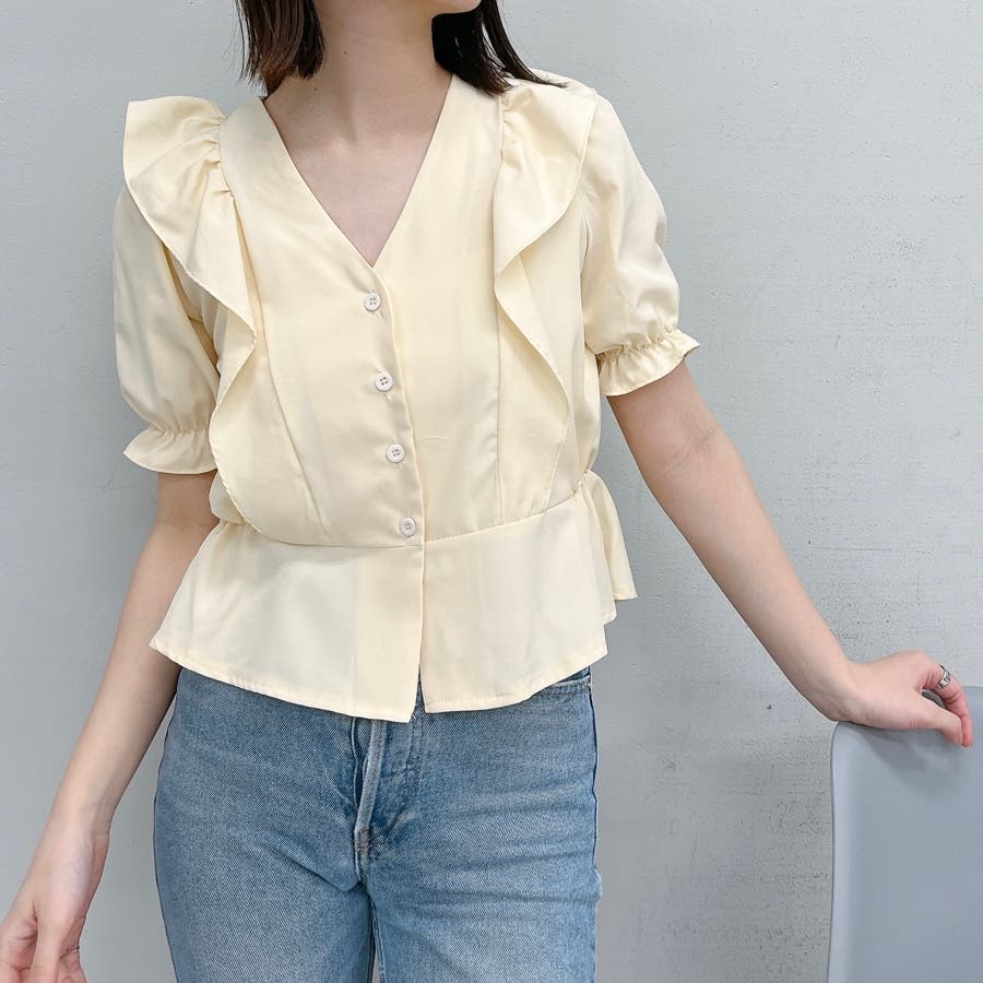 フリル カジュアル 大人 上品 きれいめ 大人かわいい 清楚 ナチュラル シンプル 重ね着 プチプラ Vネック ブラウス 大人っぽコーデ