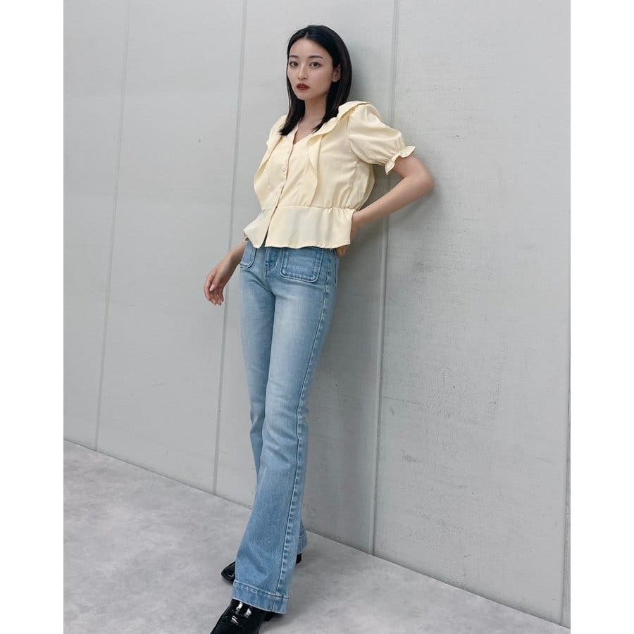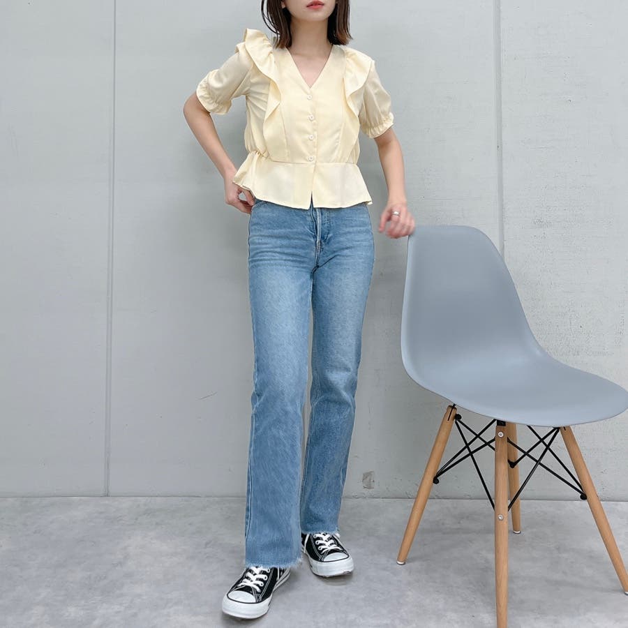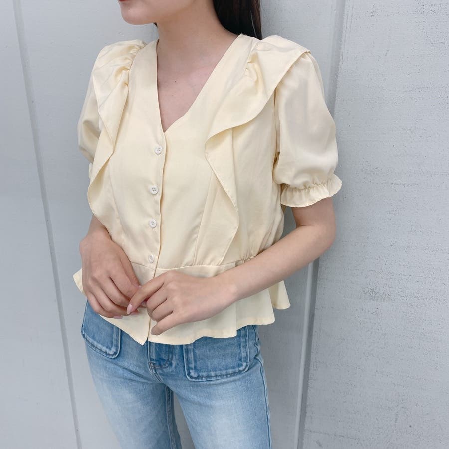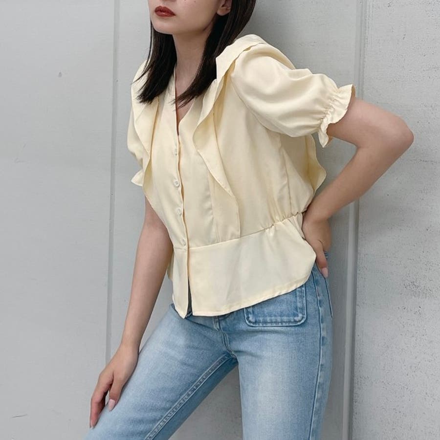 フリル カジュアル 大人 上品 きれいめ 大人かわいい 清楚 ナチュラル シンプル 重ね着 プチプラ Vネック ブラウス 大人っぽコーデ