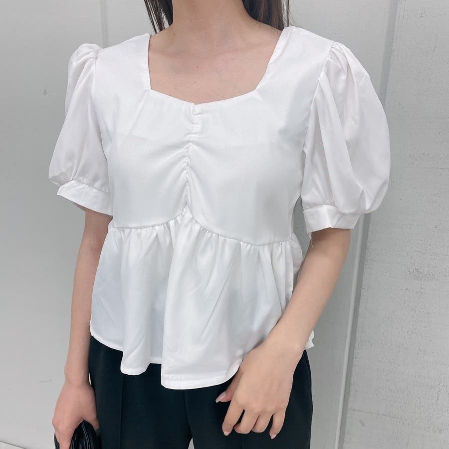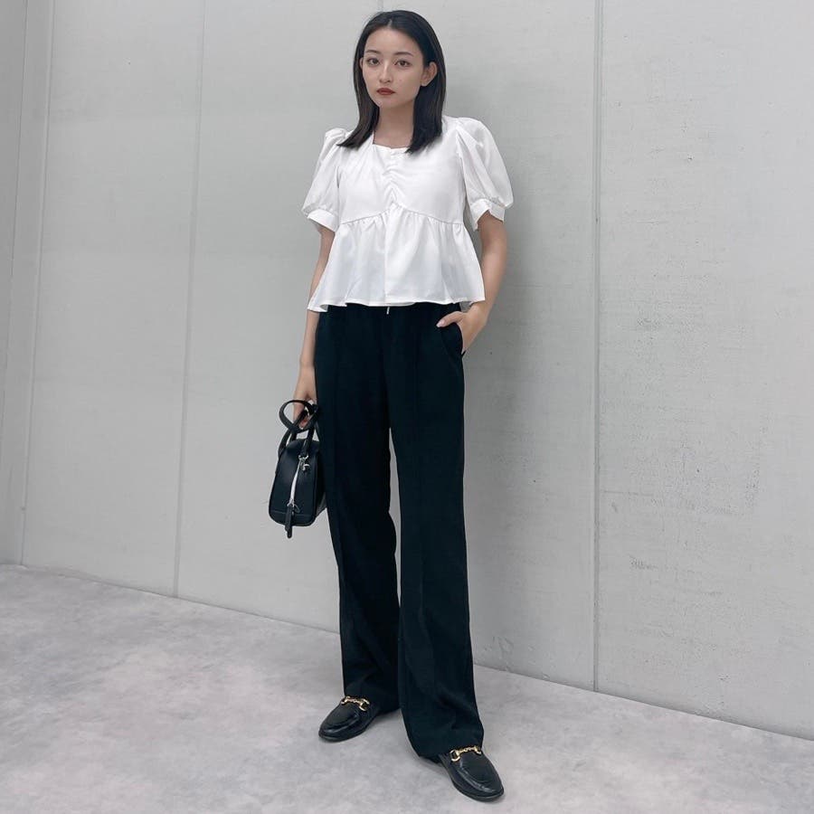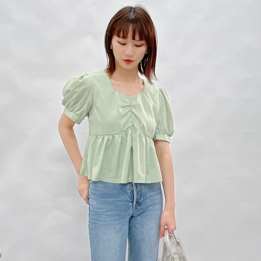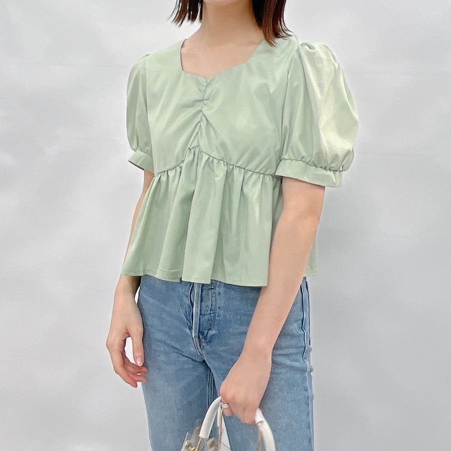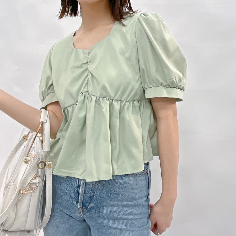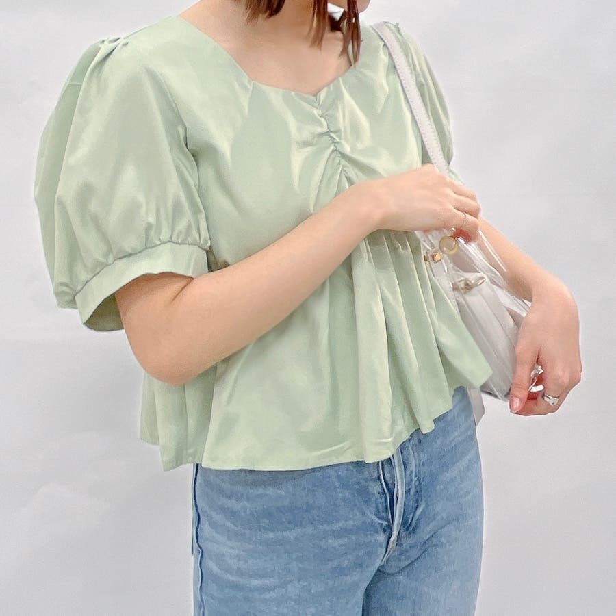 ・肩や胸元と裾のギャザーがふんわりとした柔らかな印象に
