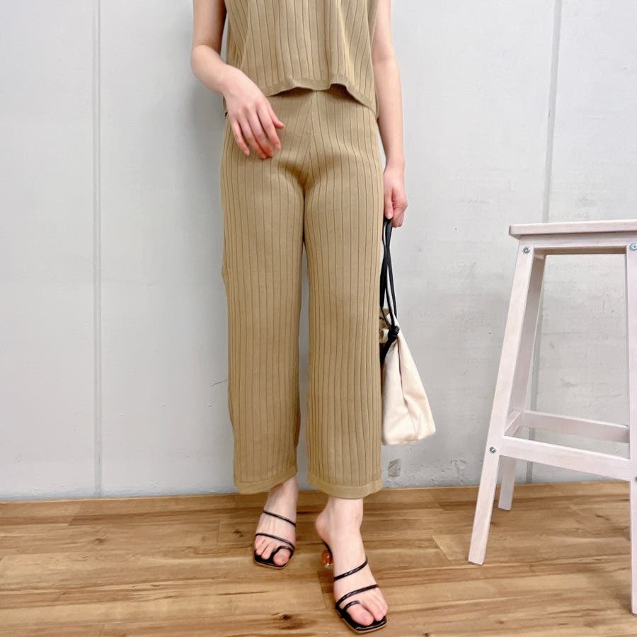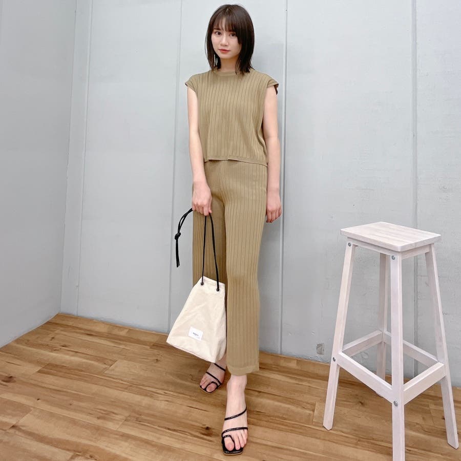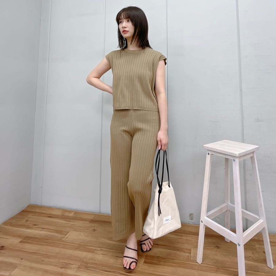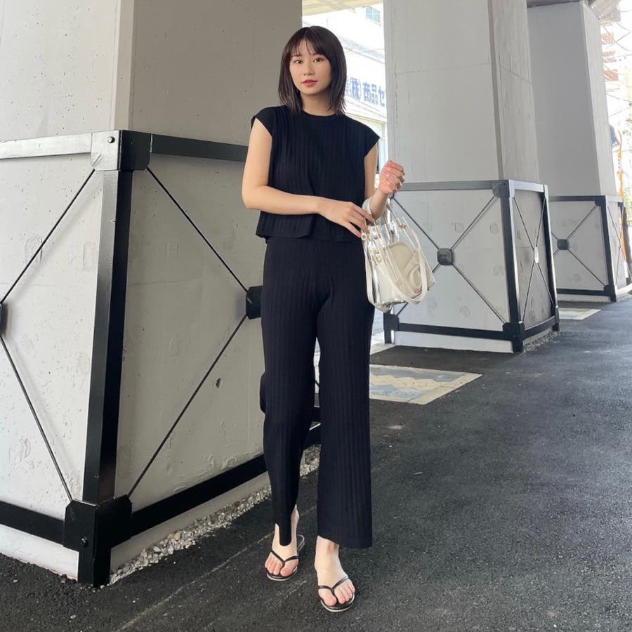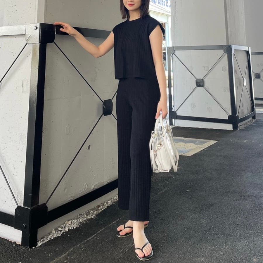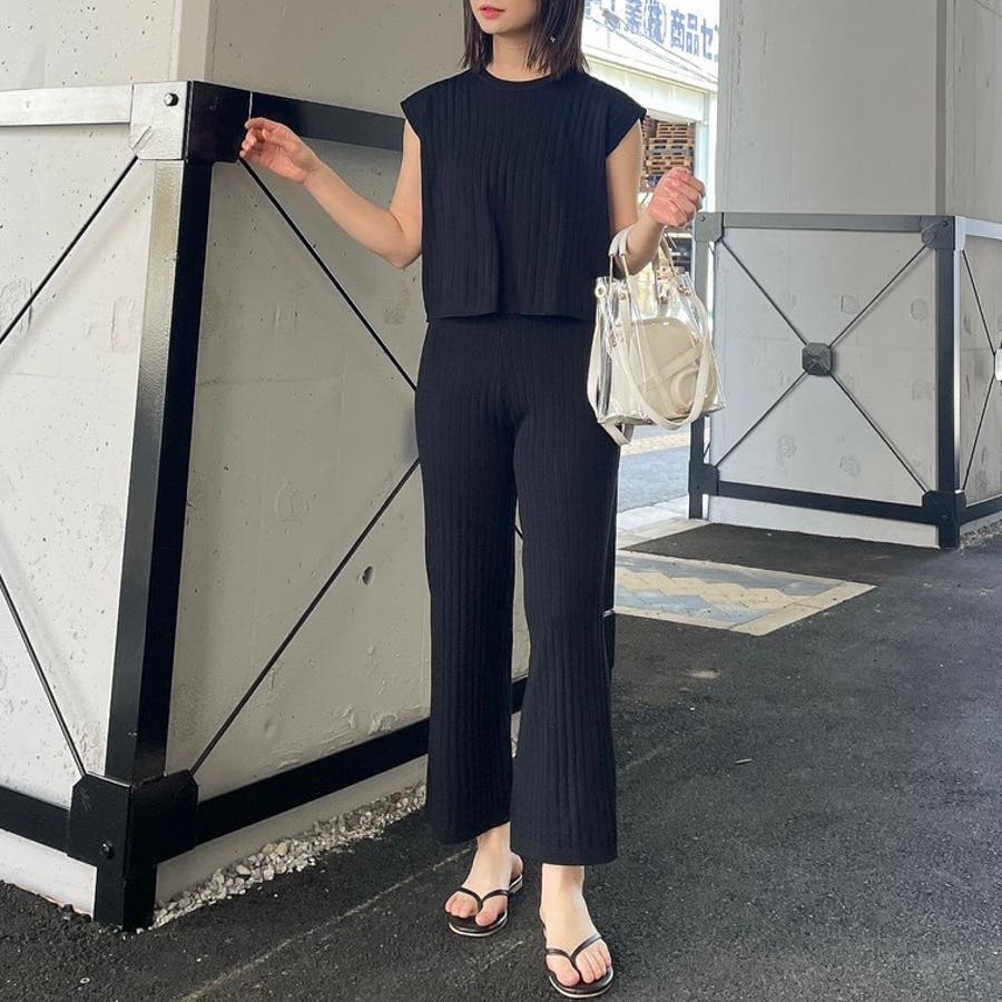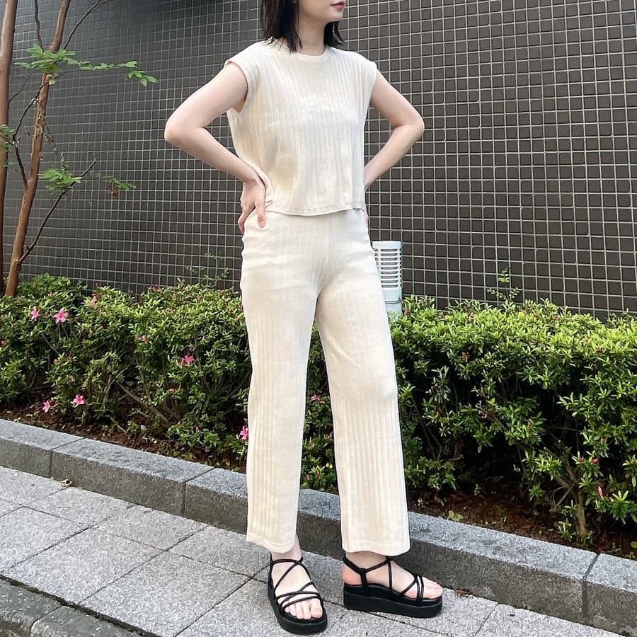 カジュアル 大人 上品 きれいめ 大人かわいい 清楚 ナチュラル シンプル 重ね着 プチプラ セットアップ リブニット ノースリーブ スリーブレス ニットパンツ