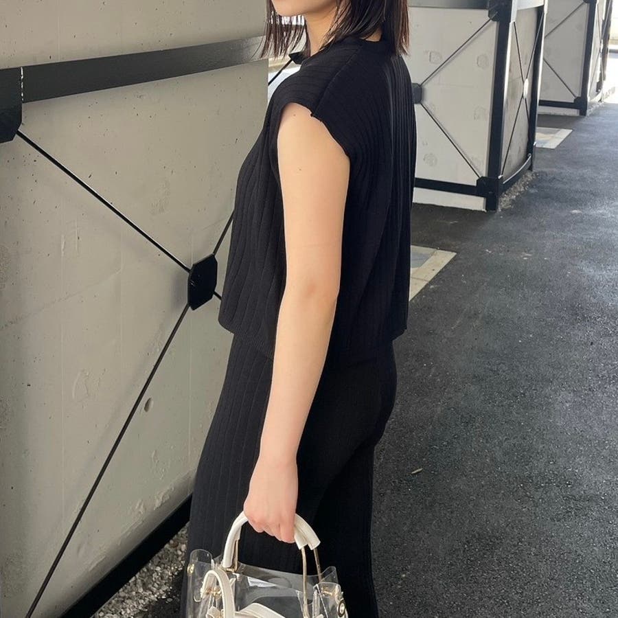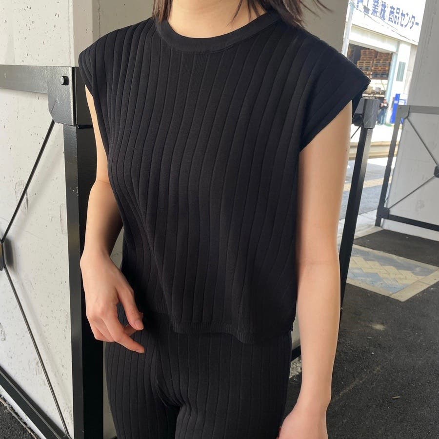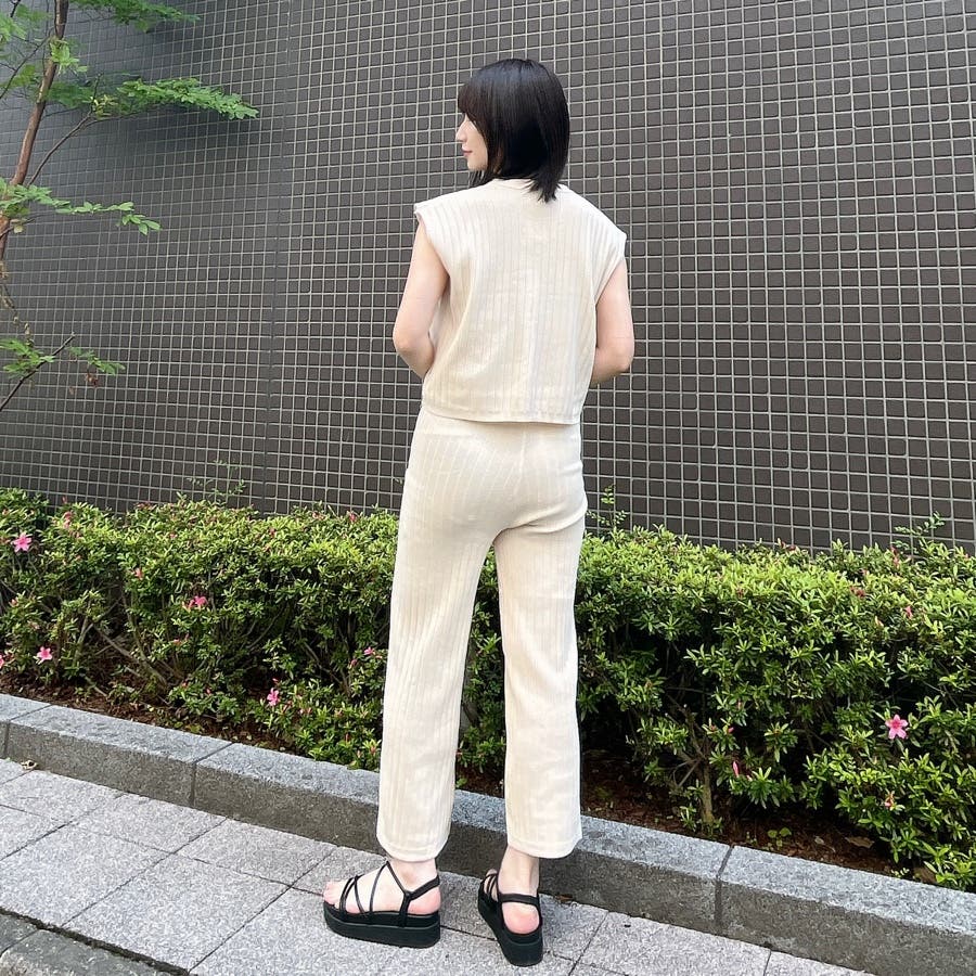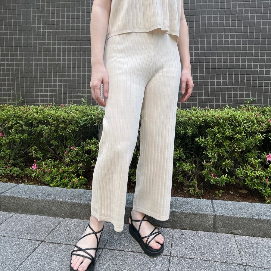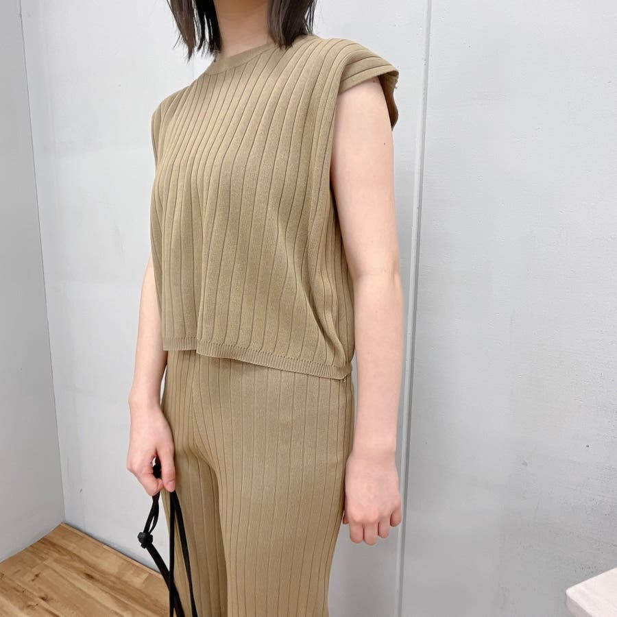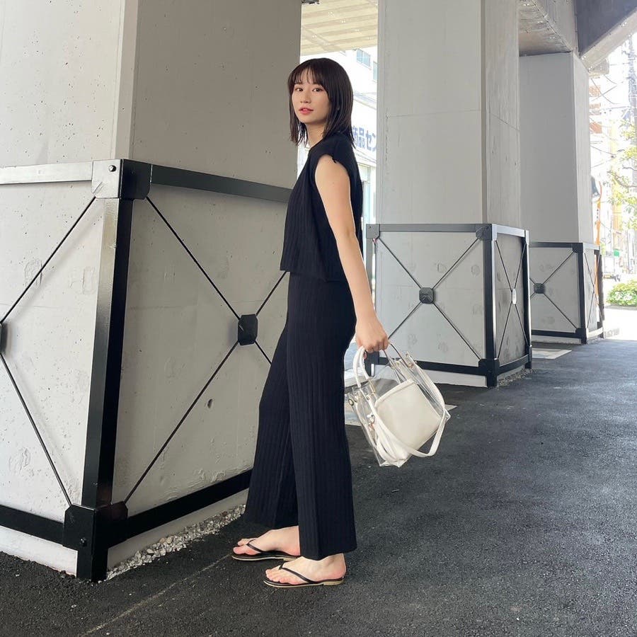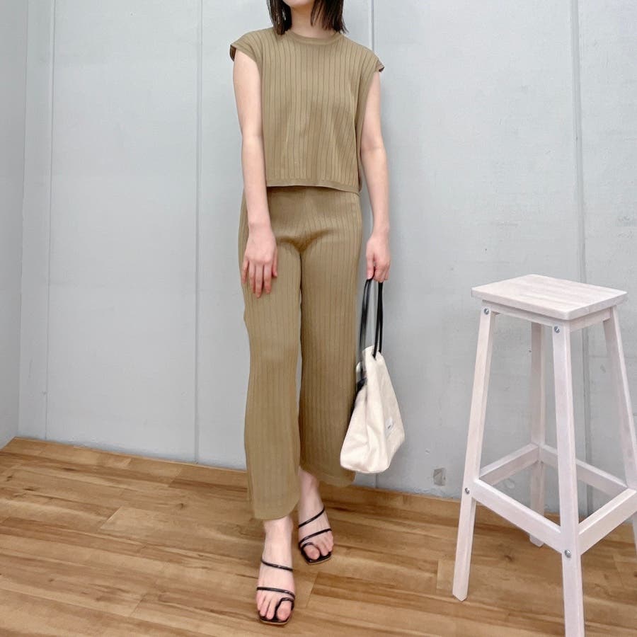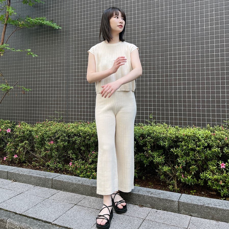 カジュアル 大人 上品 きれいめ 大人かわいい 清楚 ナチュラル シンプル 重ね着 プチプラ セットアップ リブニット ノースリーブ スリーブレス ニットパンツ