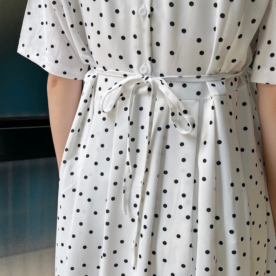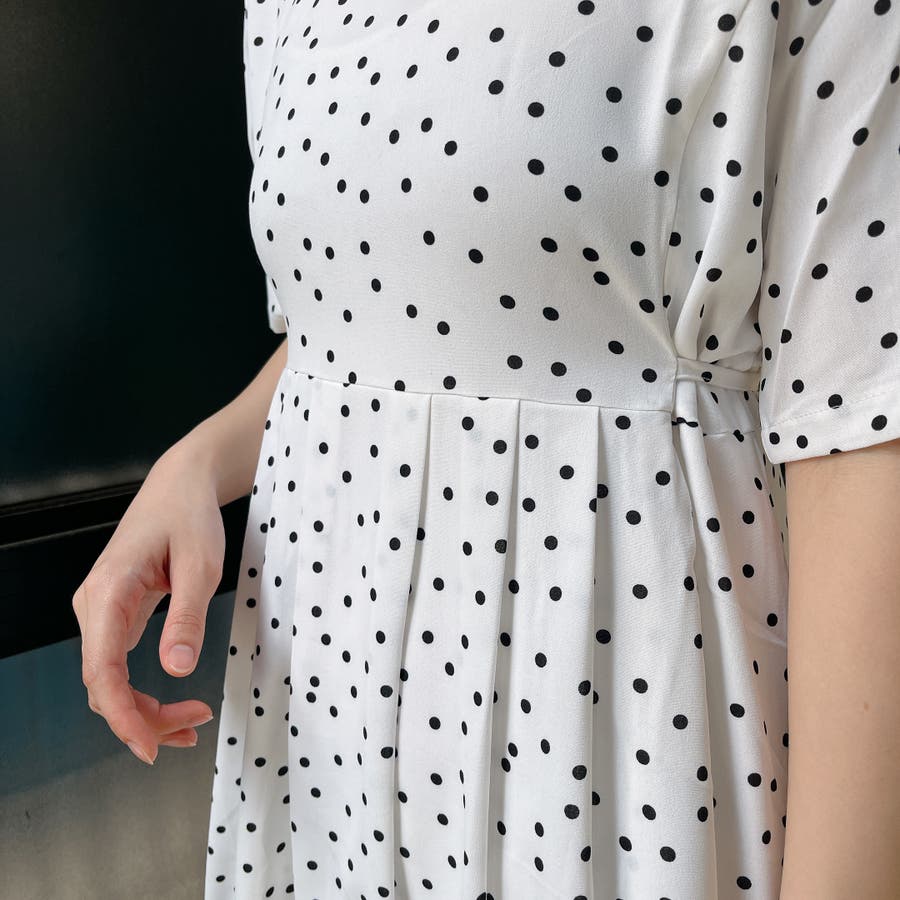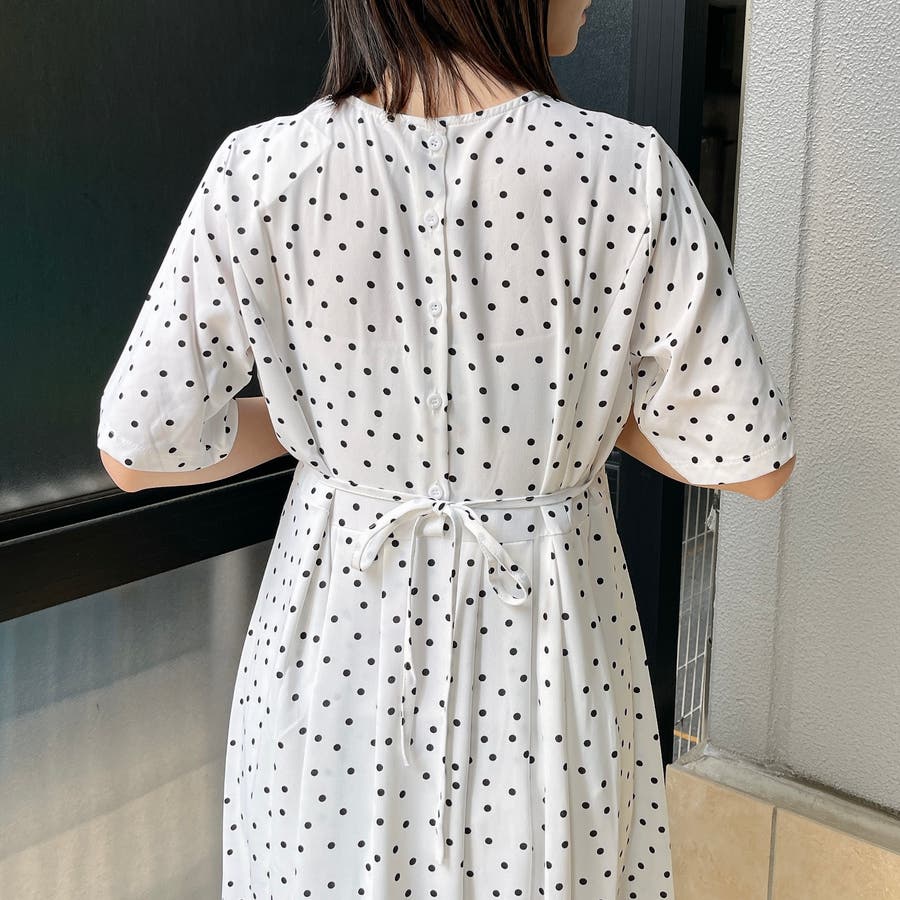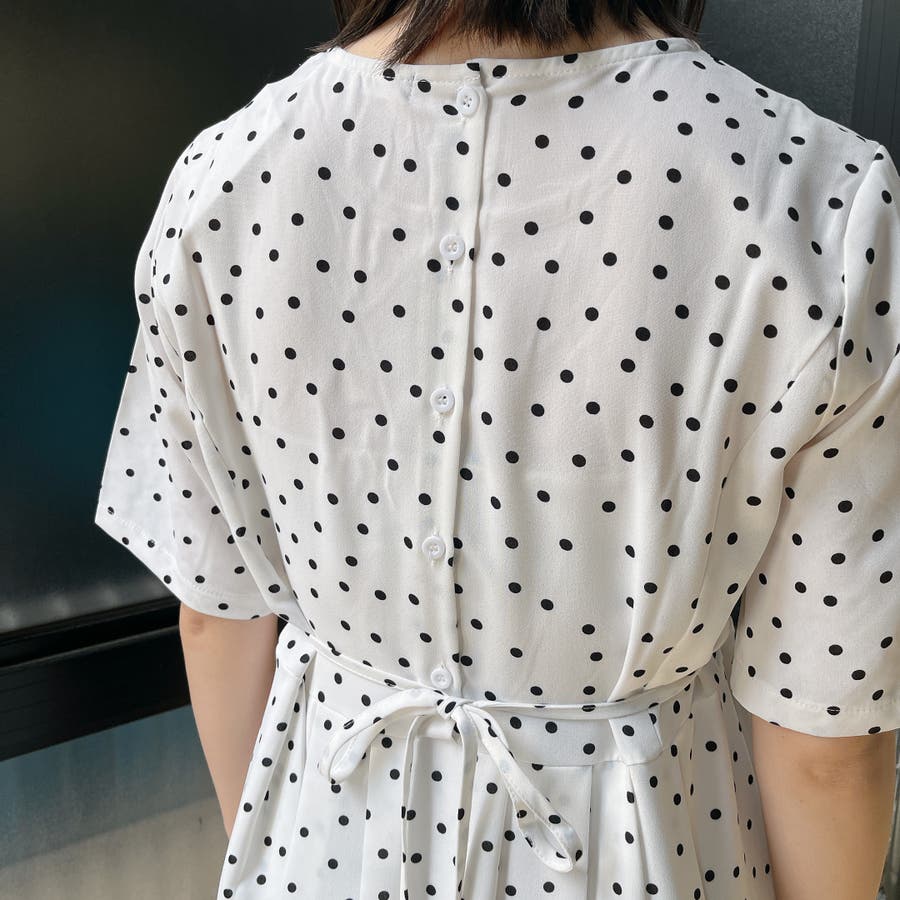 カジュアル 大人 上品 きれいめ 大人かわいい 清楚 ナチュラル シンプル プチプラ フリルブラウス ブラウス ウエストマーク ドット 水玉 ロングワンピース マキシワンピース