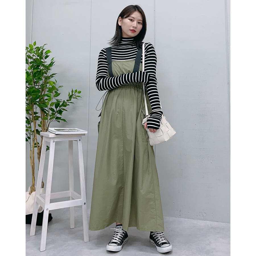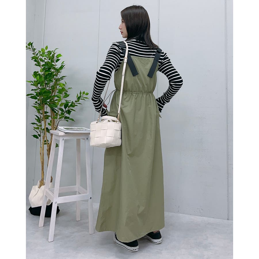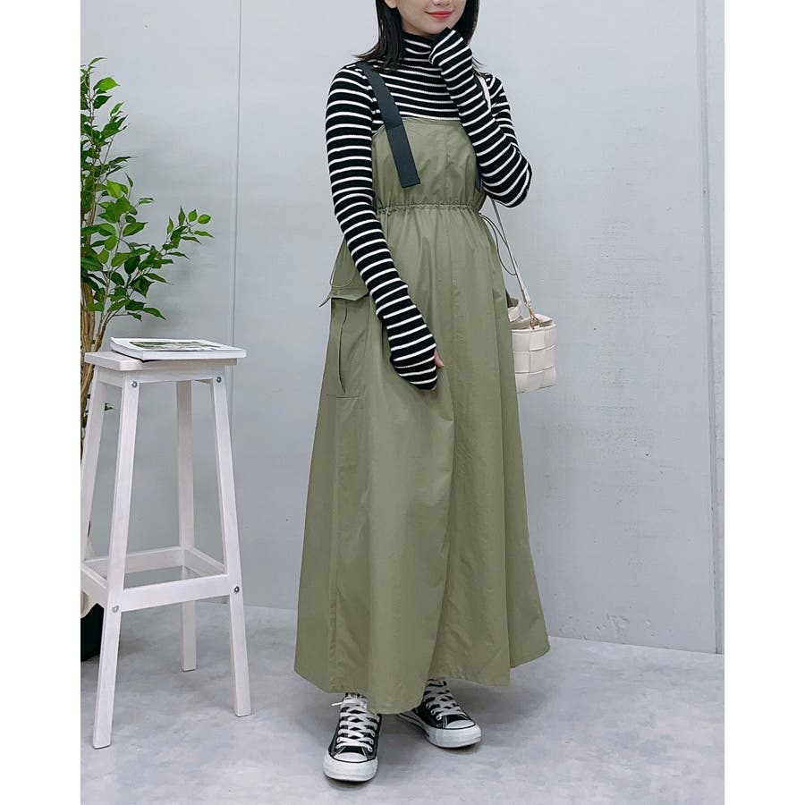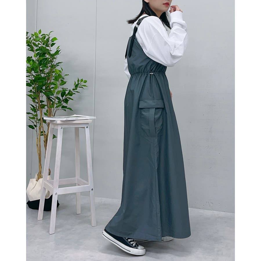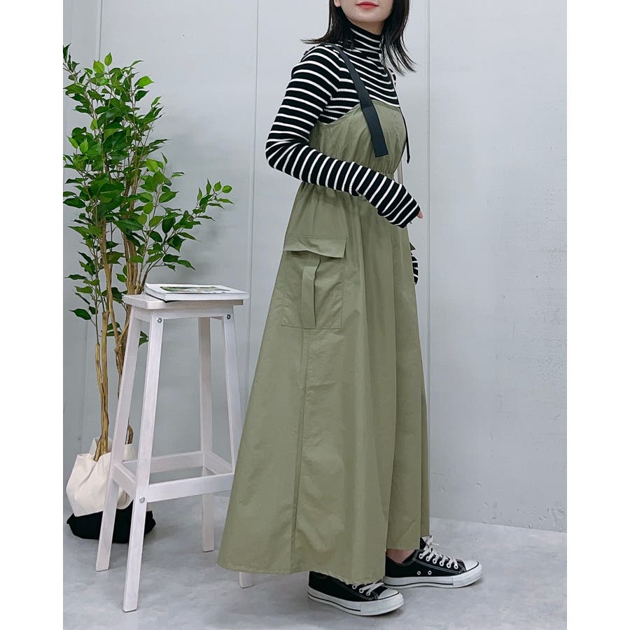 マキシワンピース ミリタリー レディース ジャンパースカート 秋服 カジュアル ナイロンワンピ―ス カーゴ