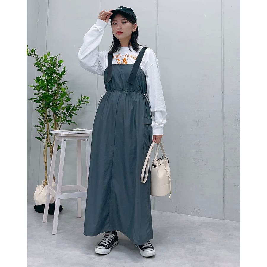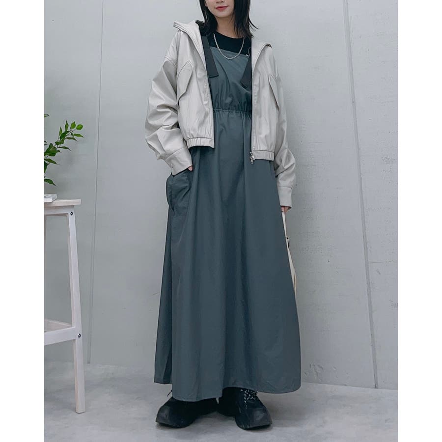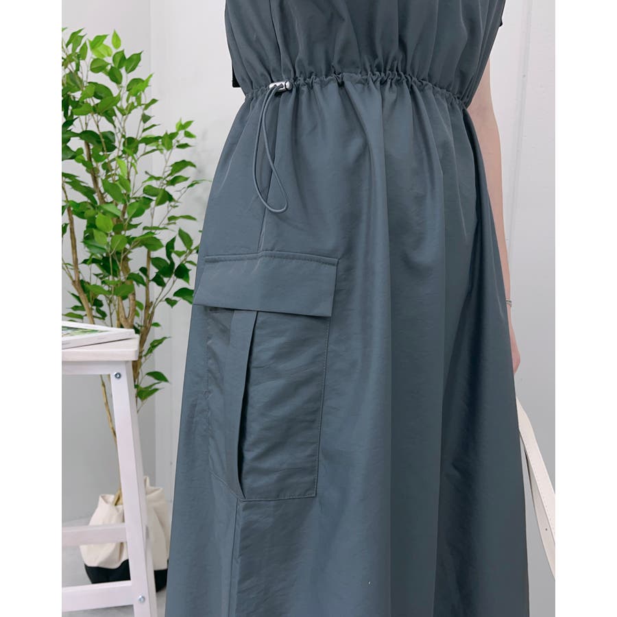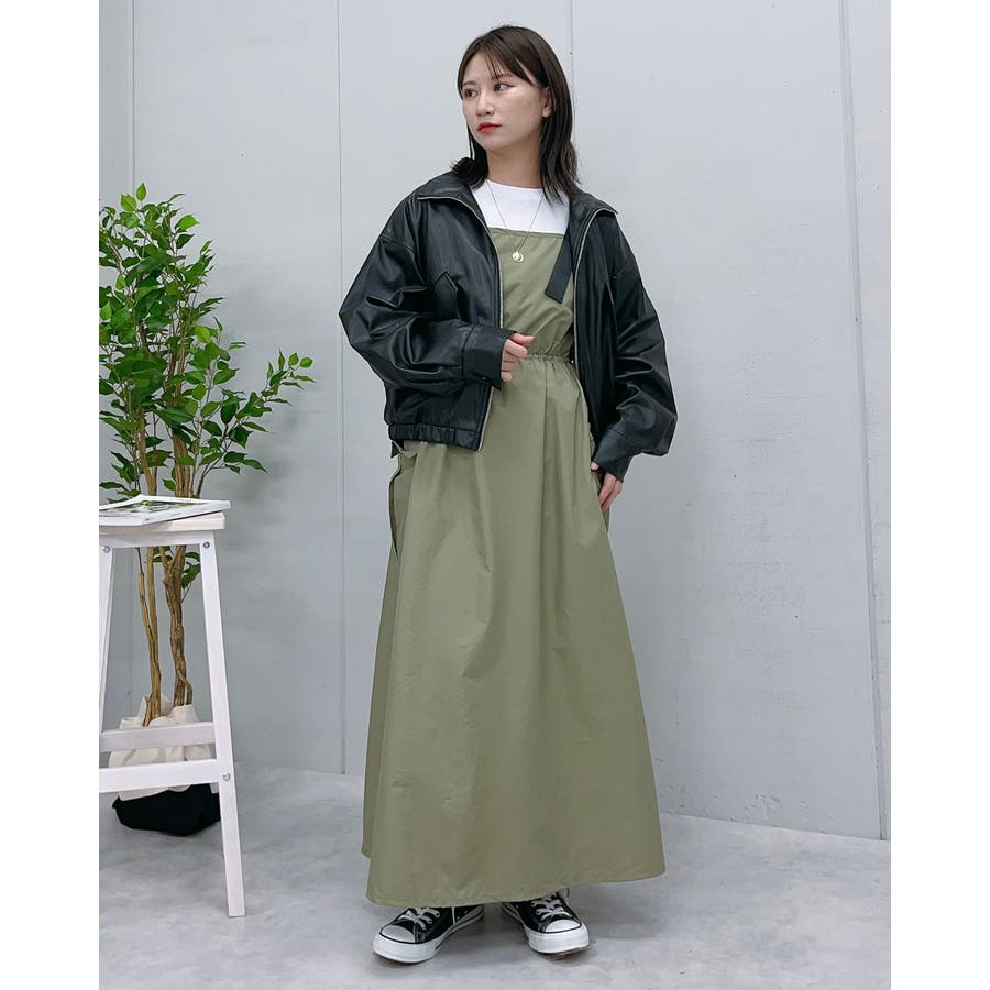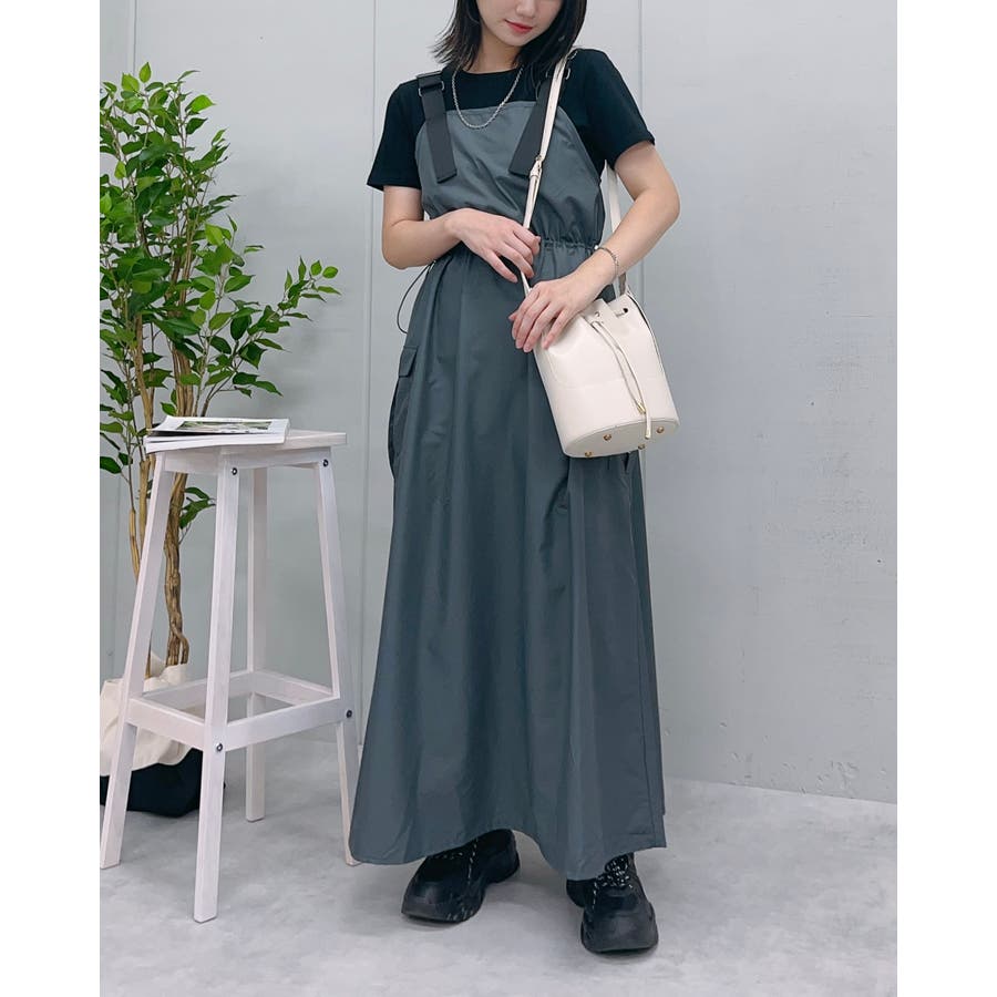 マキシワンピース ミリタリー レディース ジャンパースカート 秋服 カジュアル ナイロンワンピ―ス カーゴ