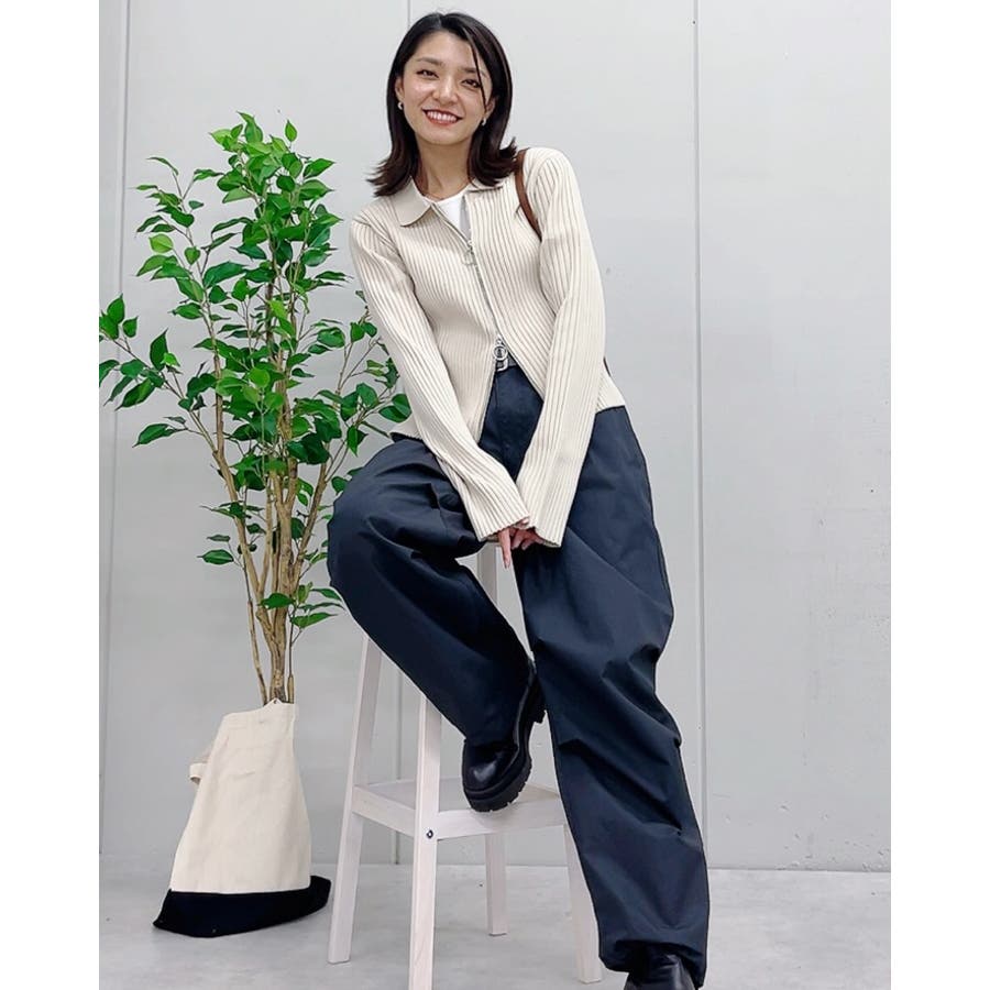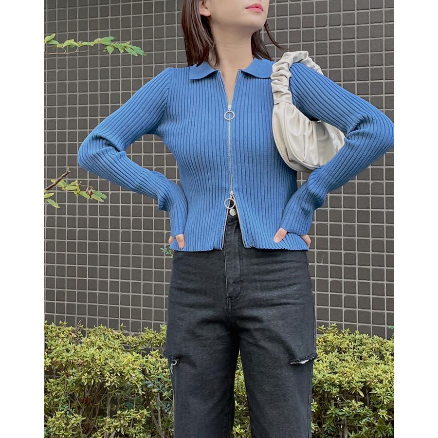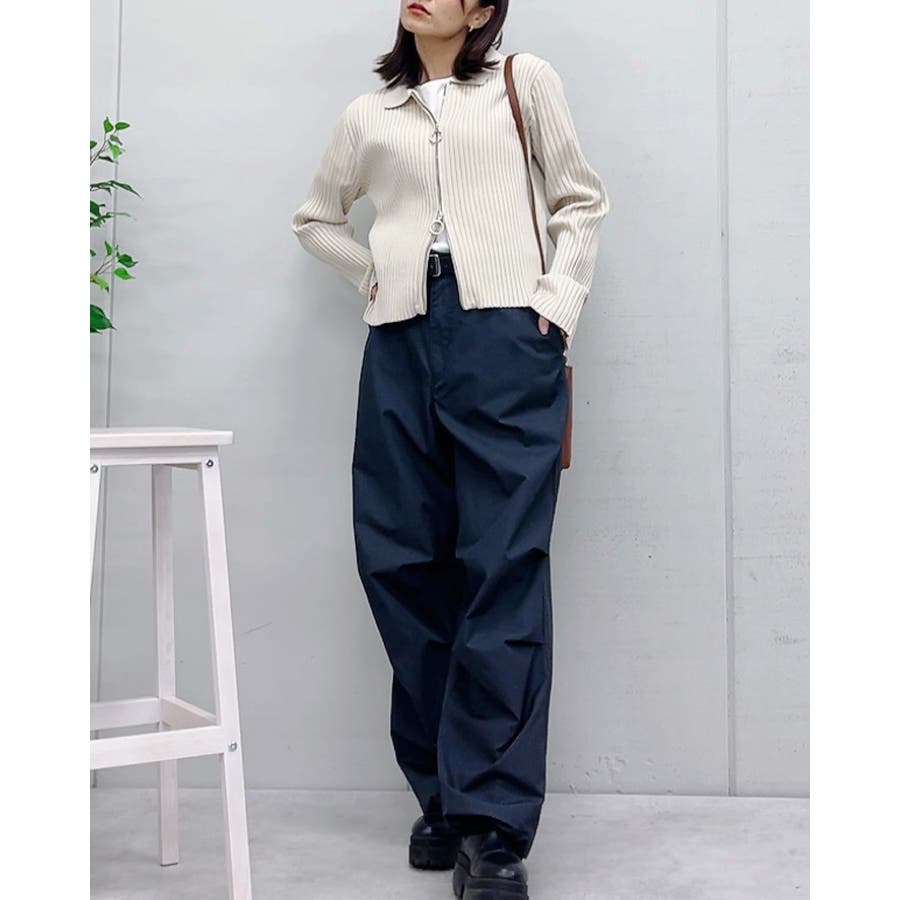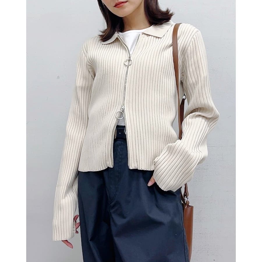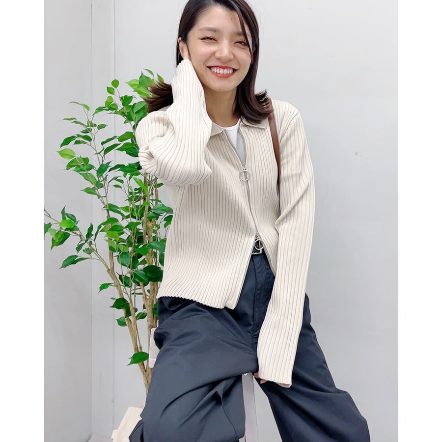 ・Wジップを程よく開けて丈の短いインナーを合わせると丈感の差が出来てこなれ感を演出します◎