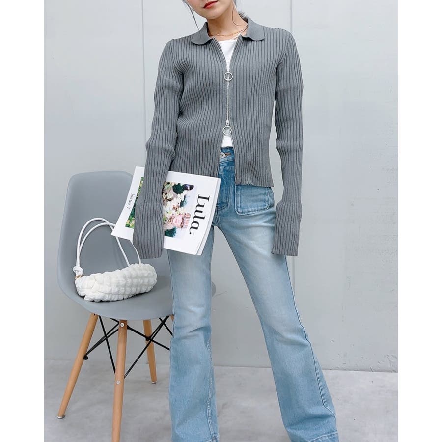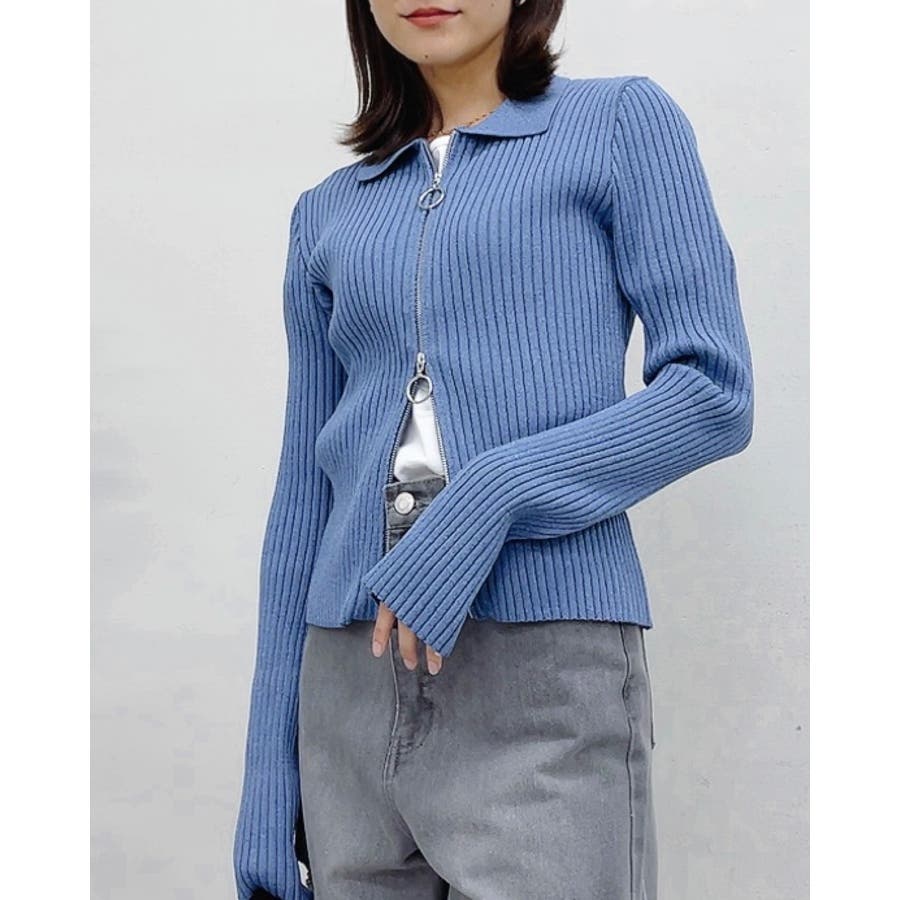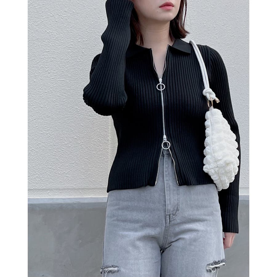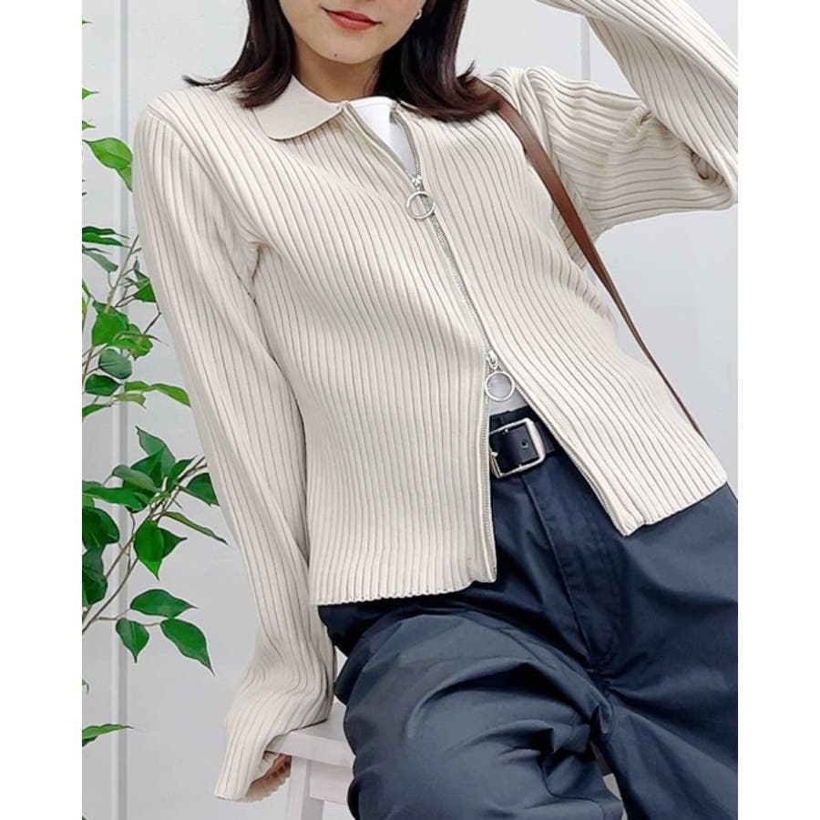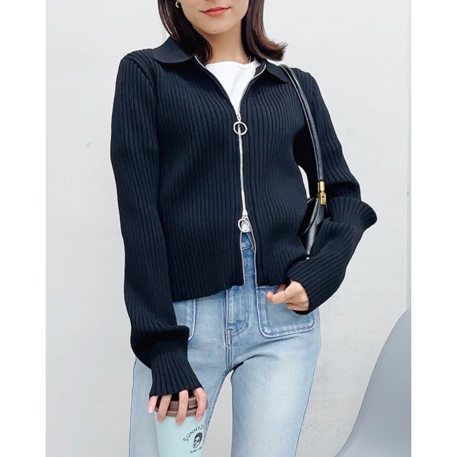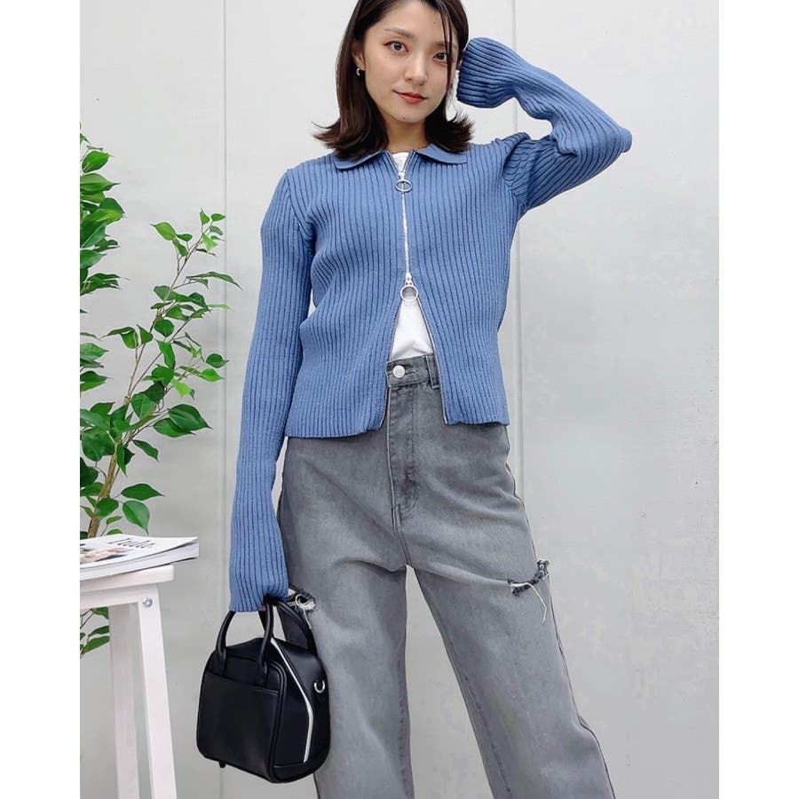・Wジップを程よく開けて丈の短いインナーを合わせると丈感の差が出来てこなれ感を演出します◎