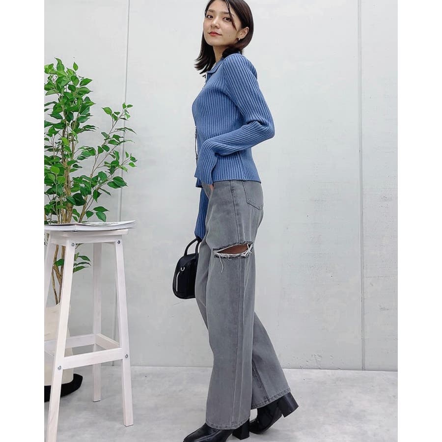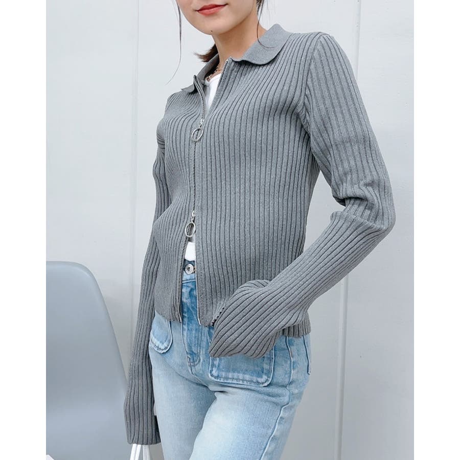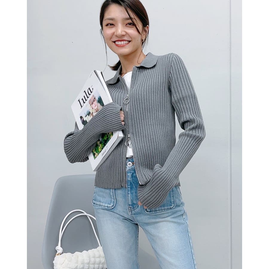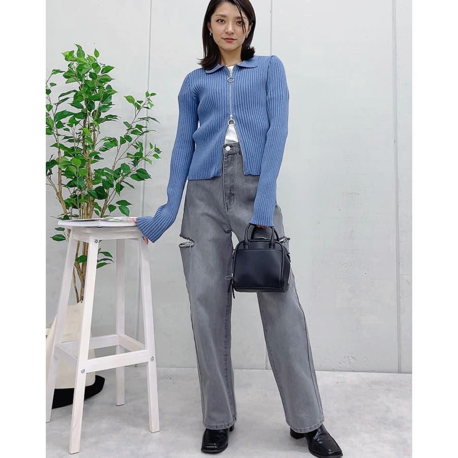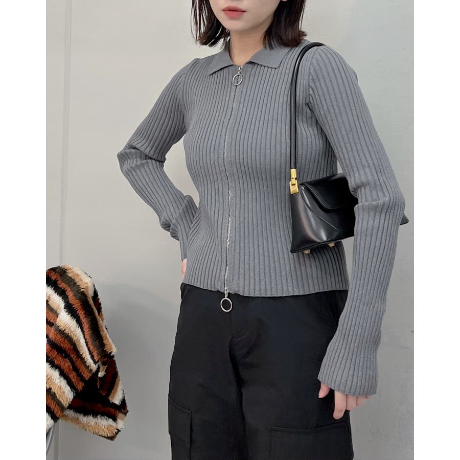 ・Wジップを程よく開けて丈の短いインナーを合わせると丈感の差が出来てこなれ感を演出します◎