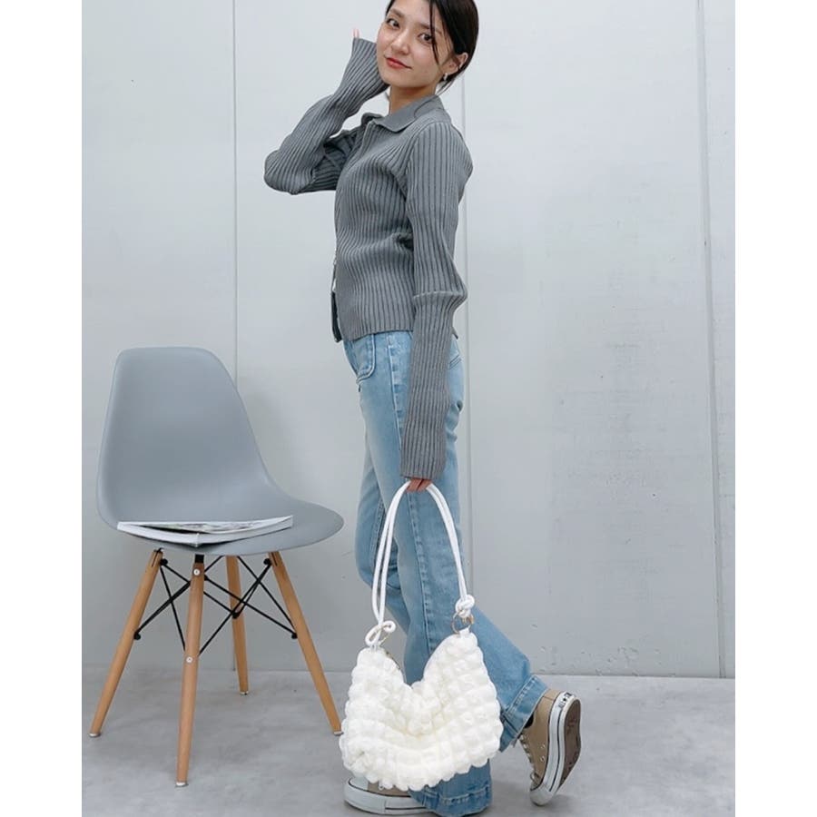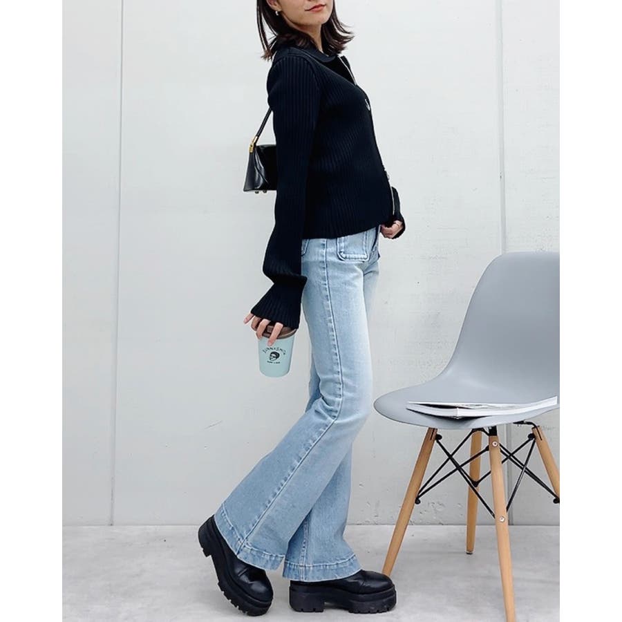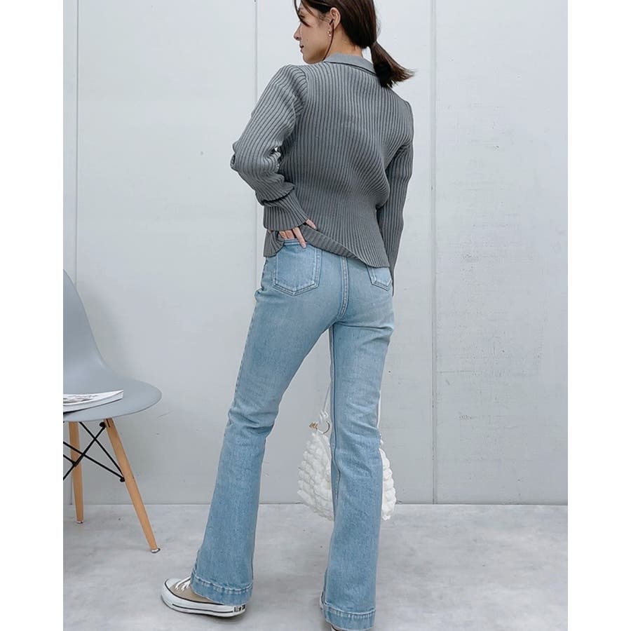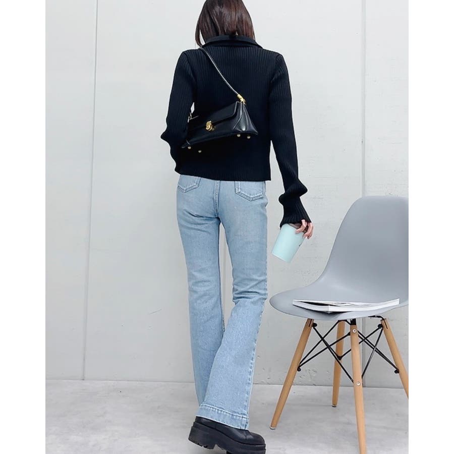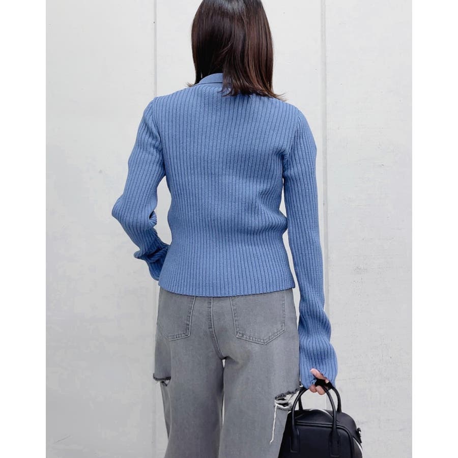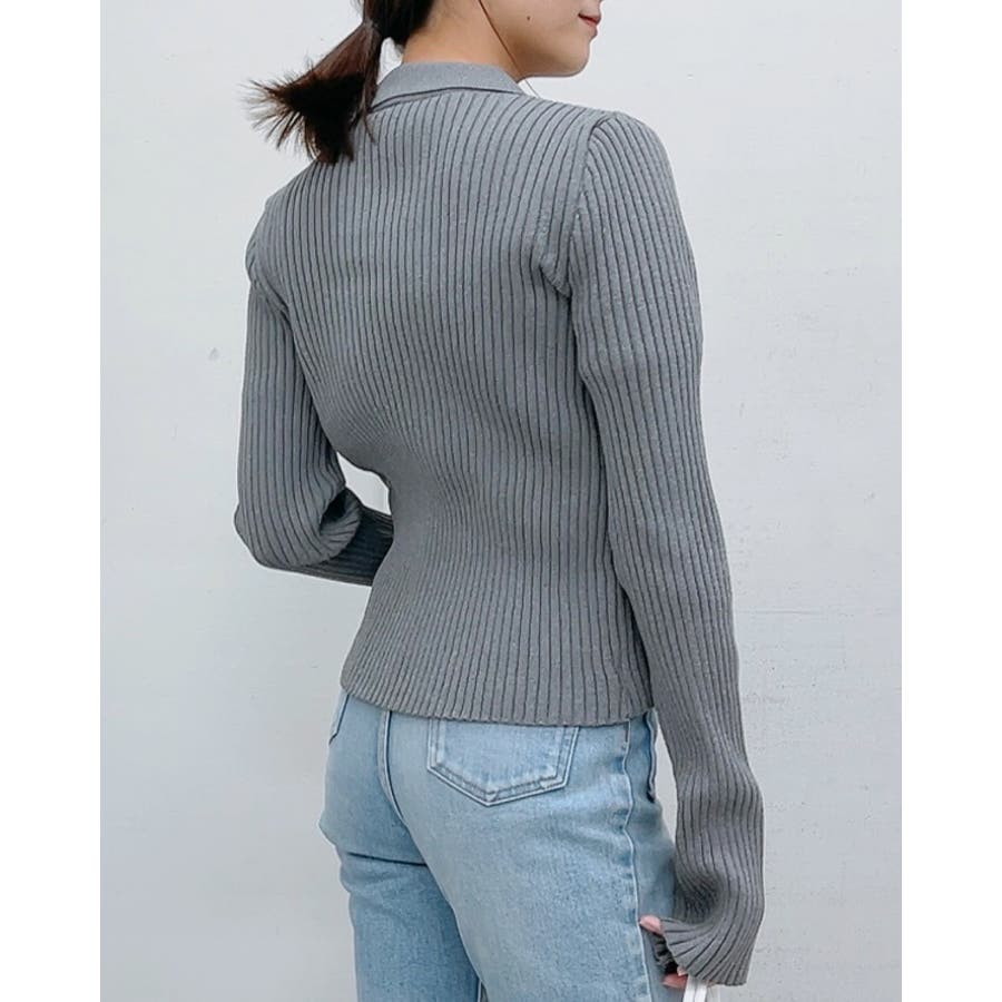 ・体に沿ったシルエットでボトムスを選ばず、幅広いコーデが楽しめるアイテムです。