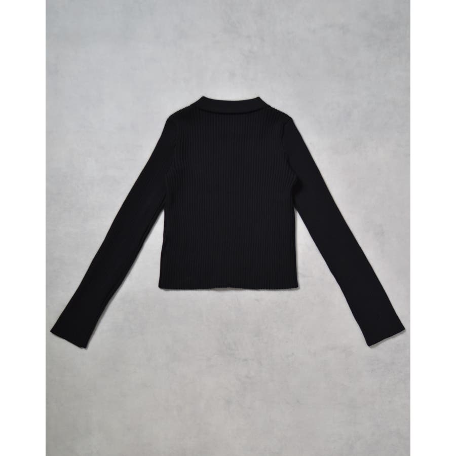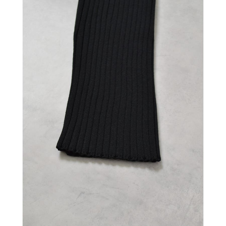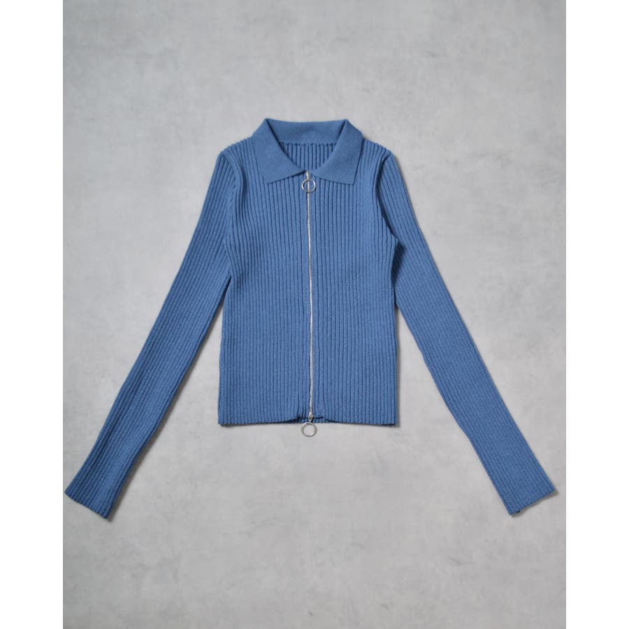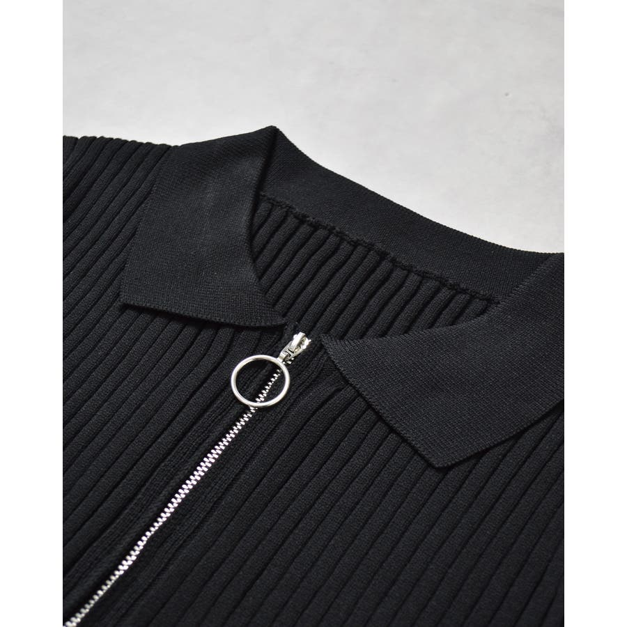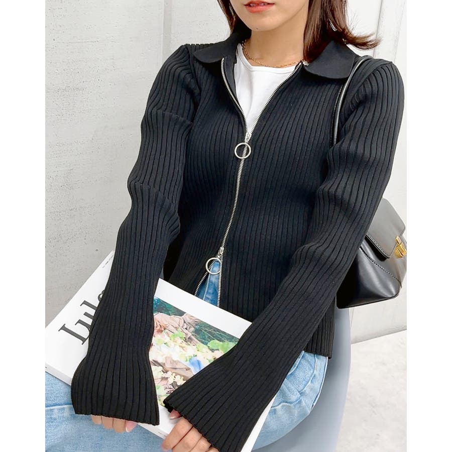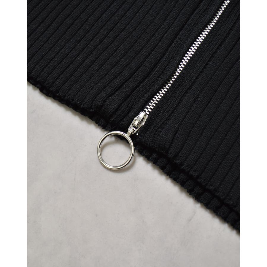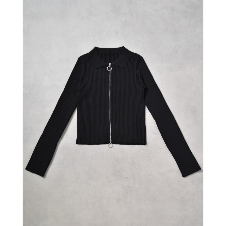 【ブラック】Wジップ襟付き長袖リブニットトップス