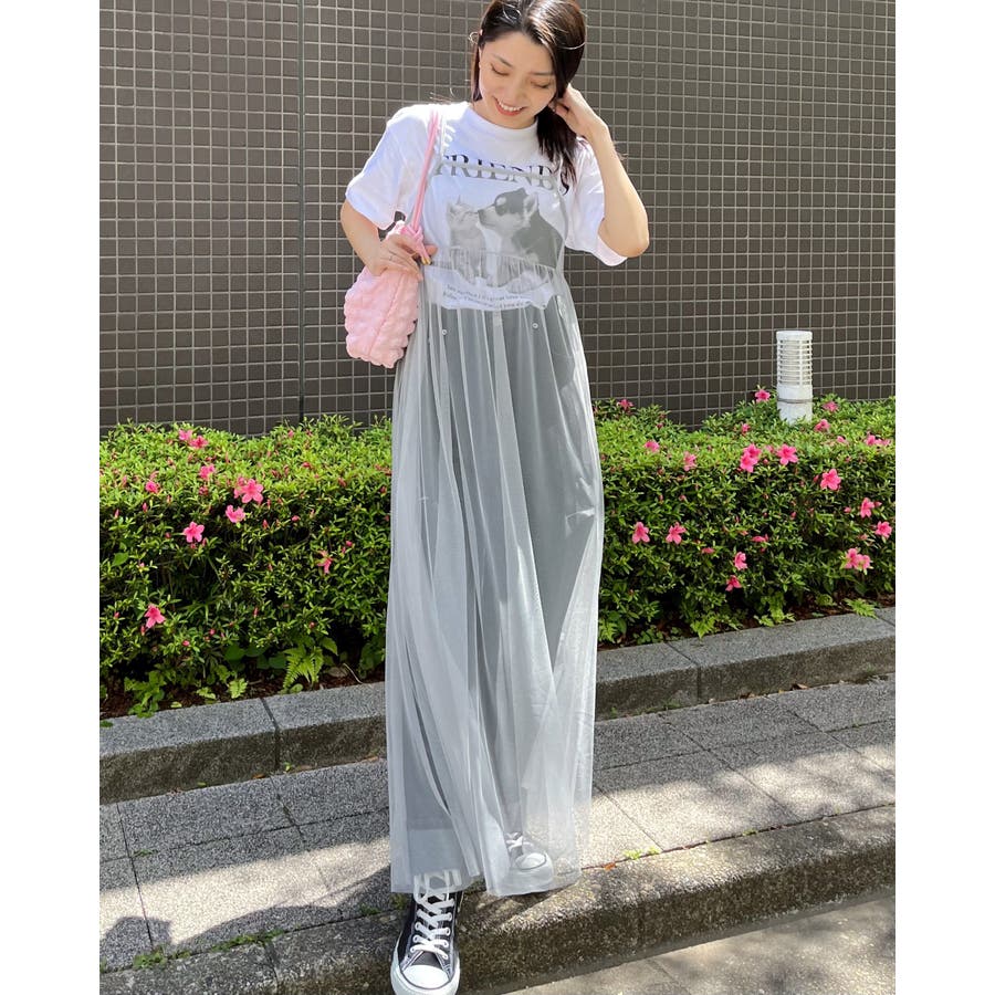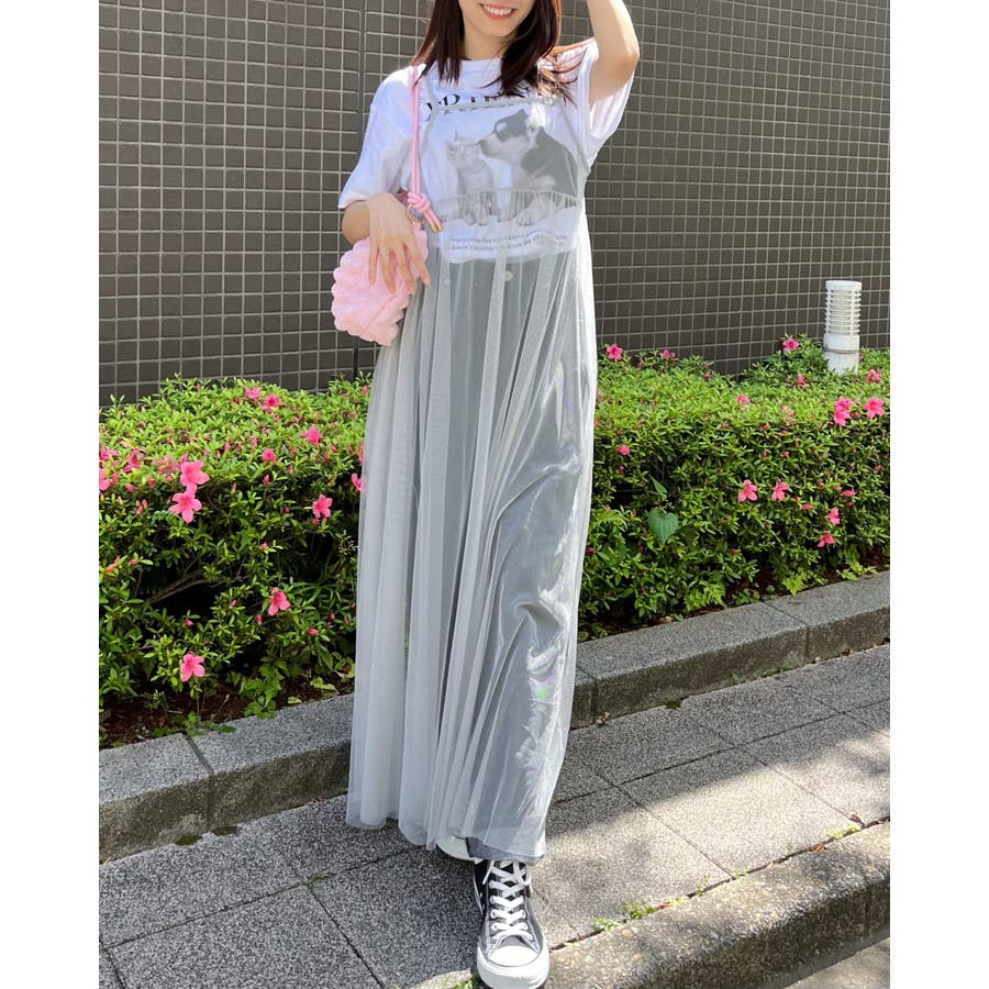 ・プリントTシャツと合わせて、透け感を演出するのも◎。
