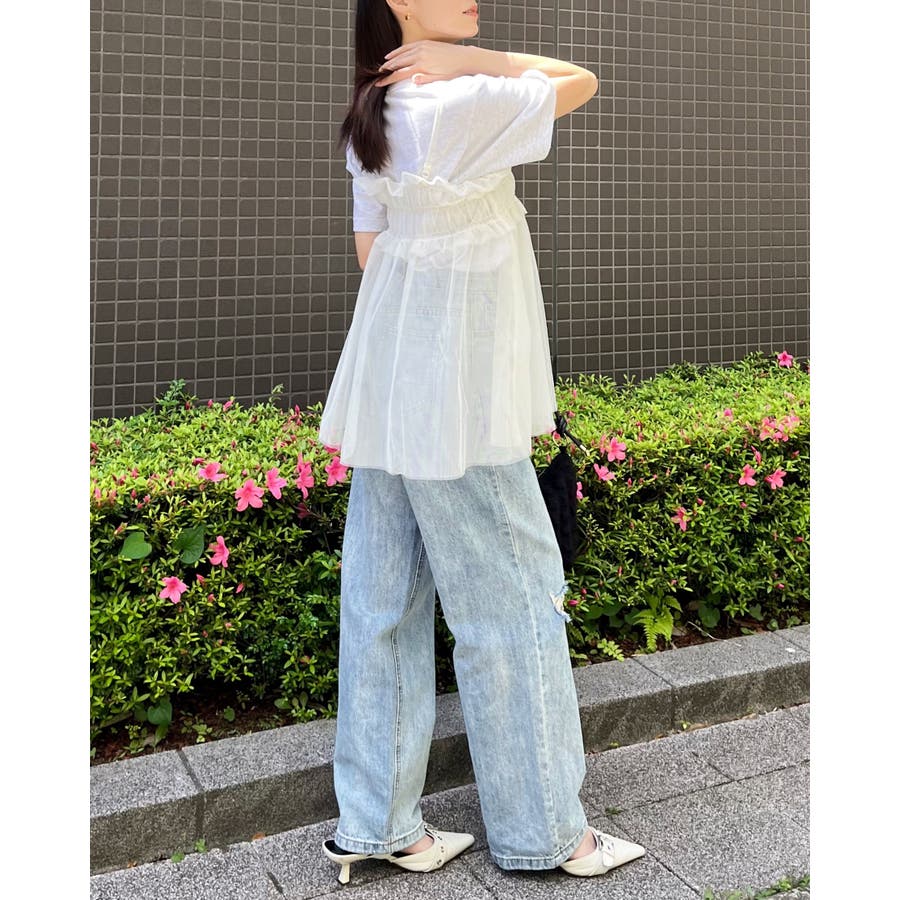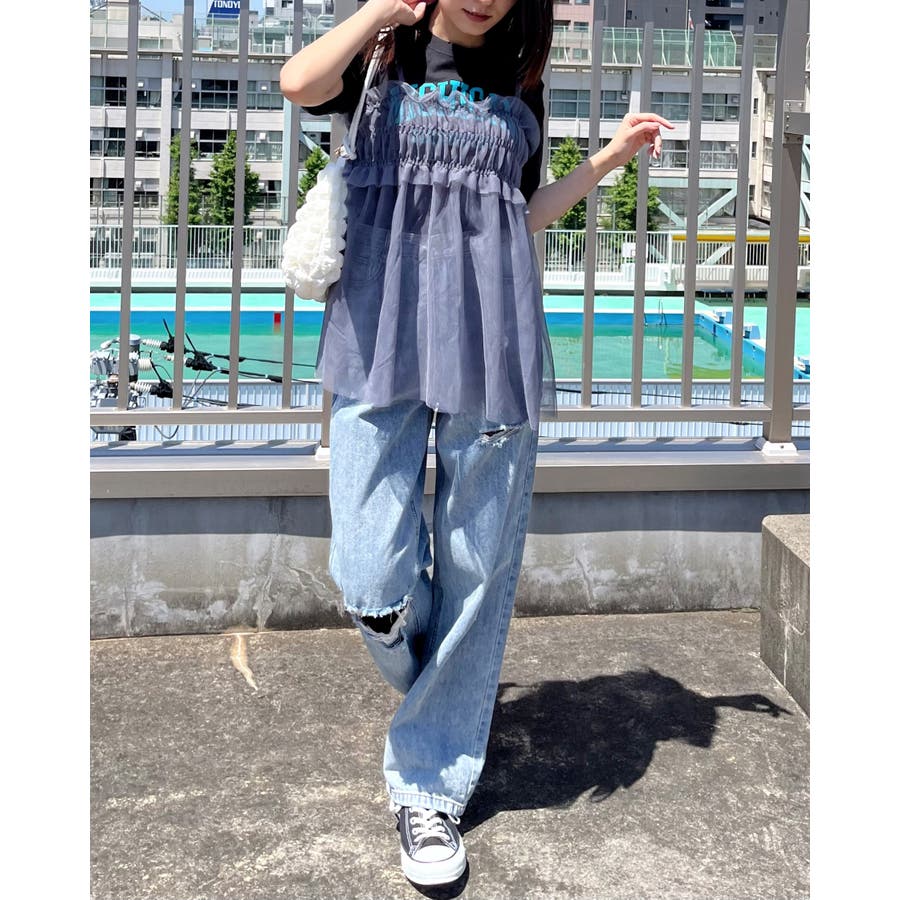・プリントTシャツと合わせて、透け感を楽しむのも◎